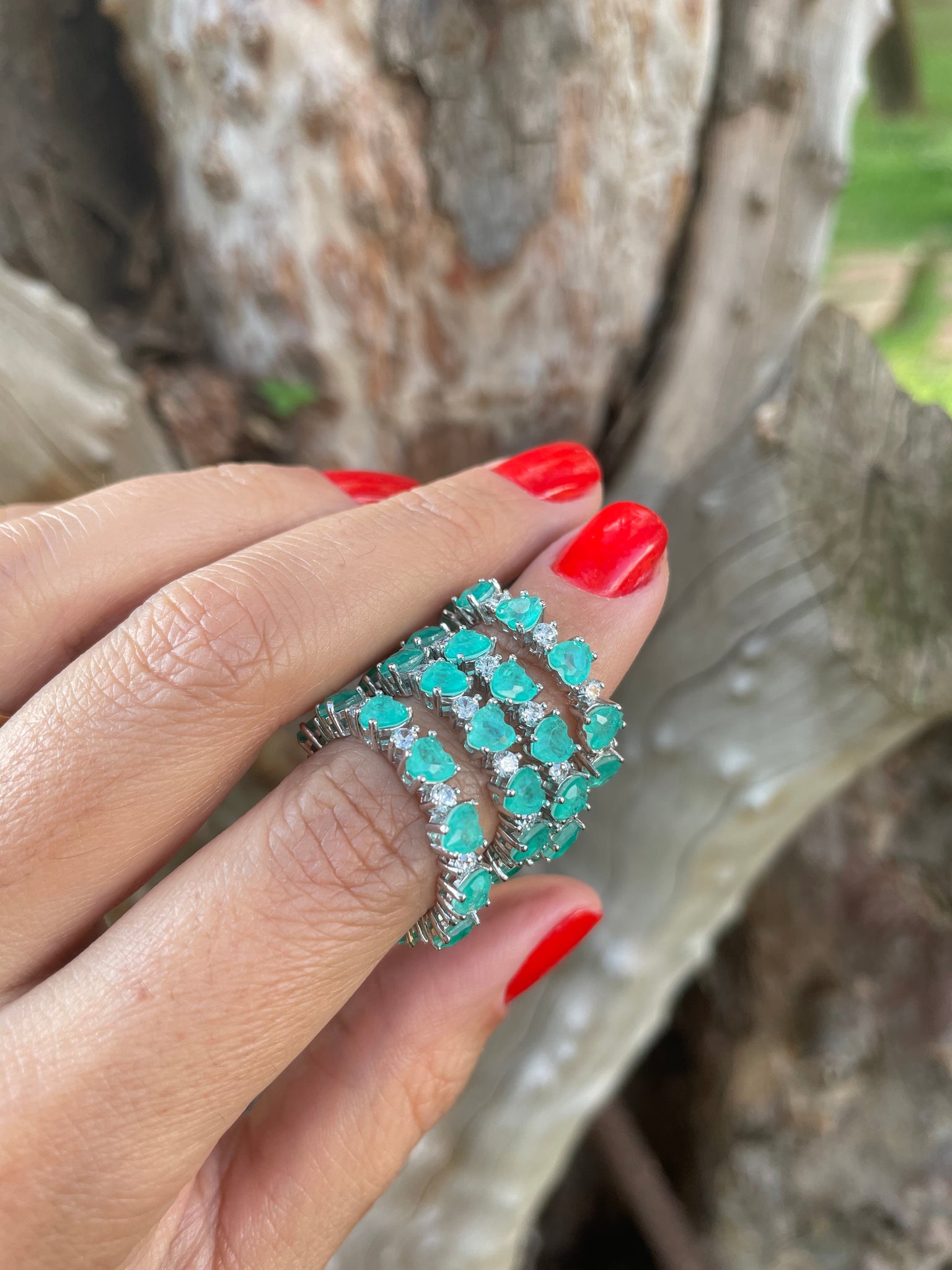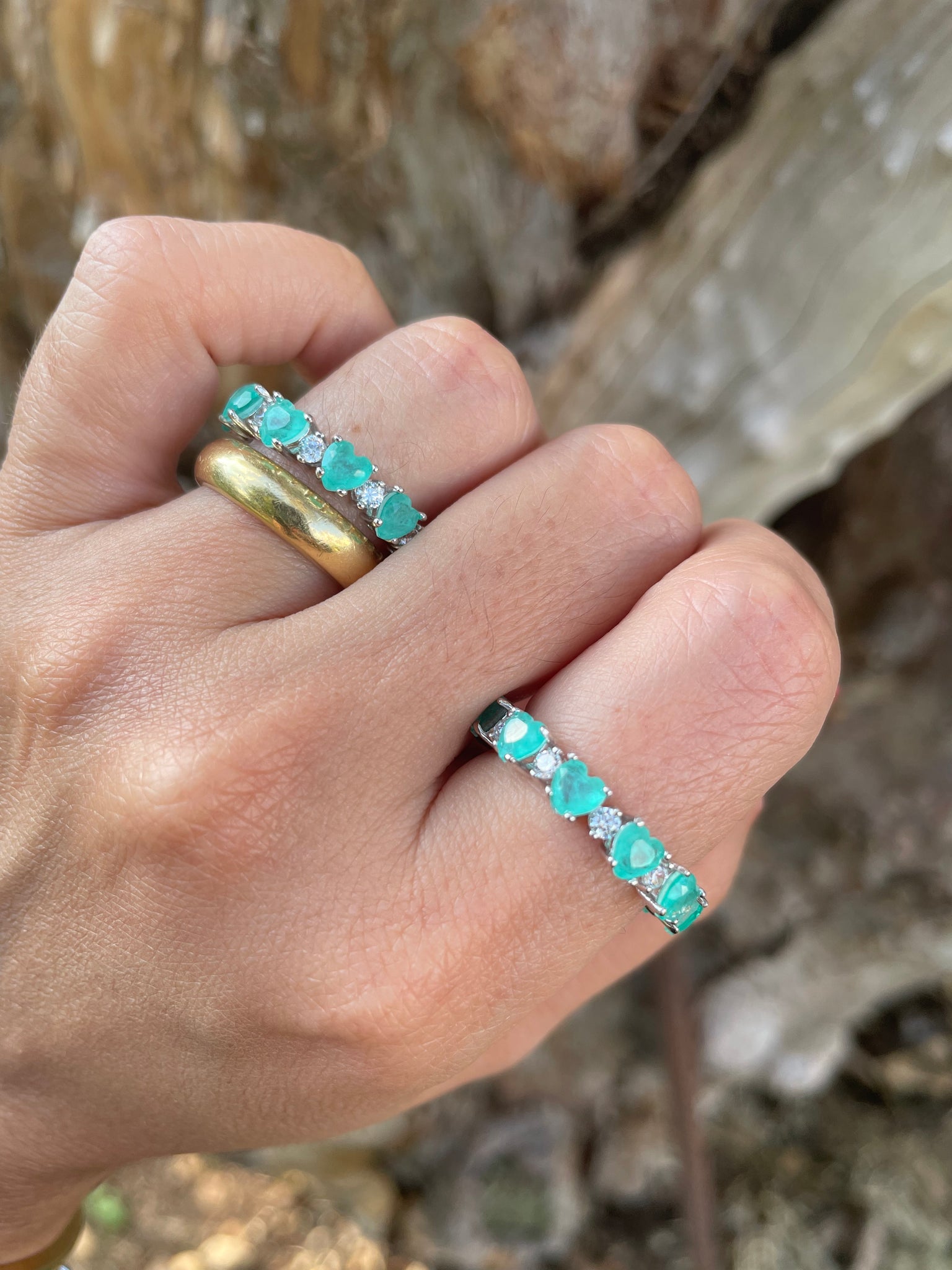 Anel aparador coração esmeralda colombiana fusion e zirconias em prata925 com banho de ródio branco