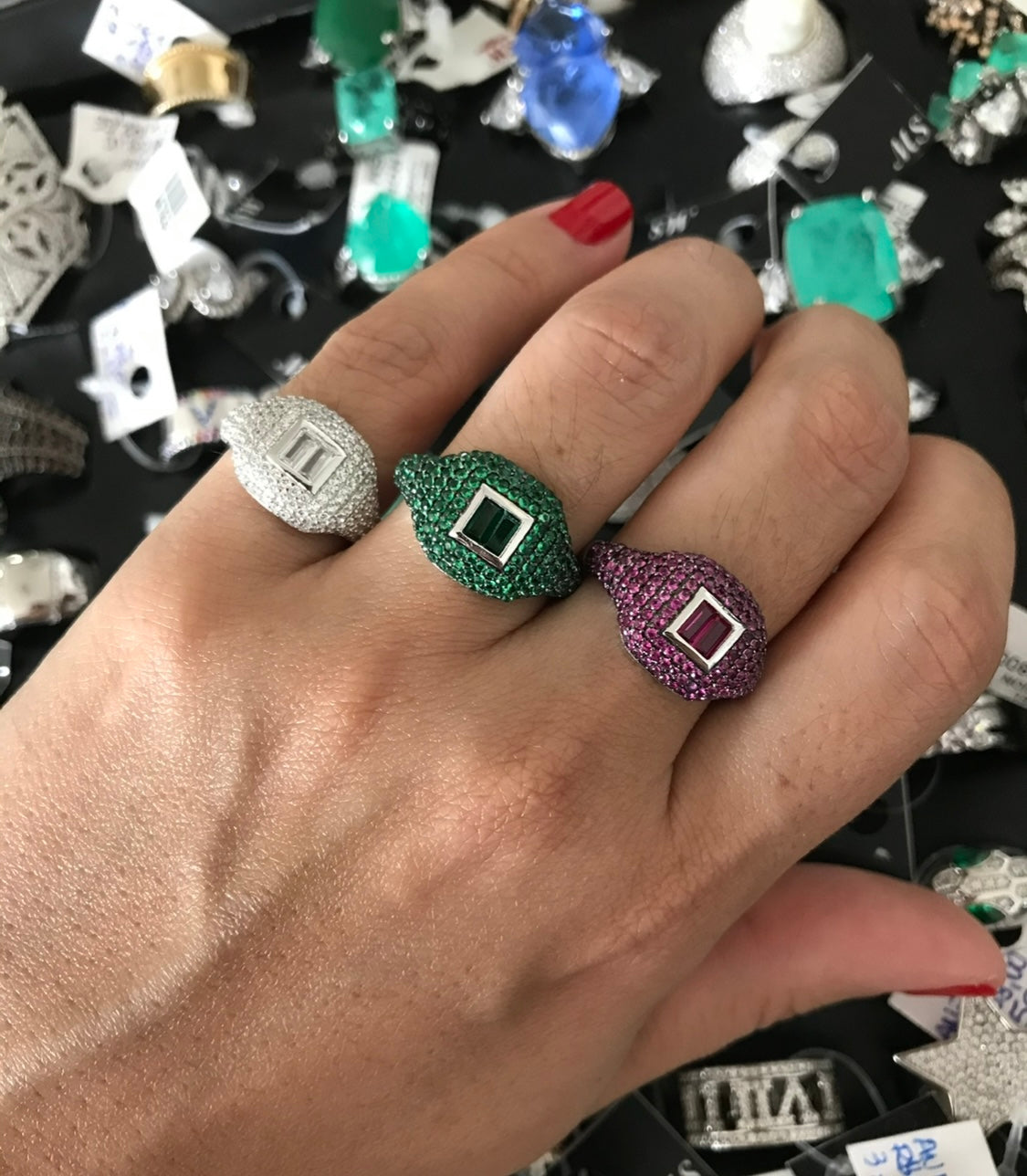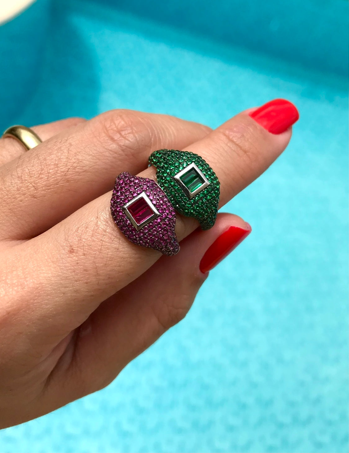 Anel em prata925 com zirconias coloridas e banho de ródio branco