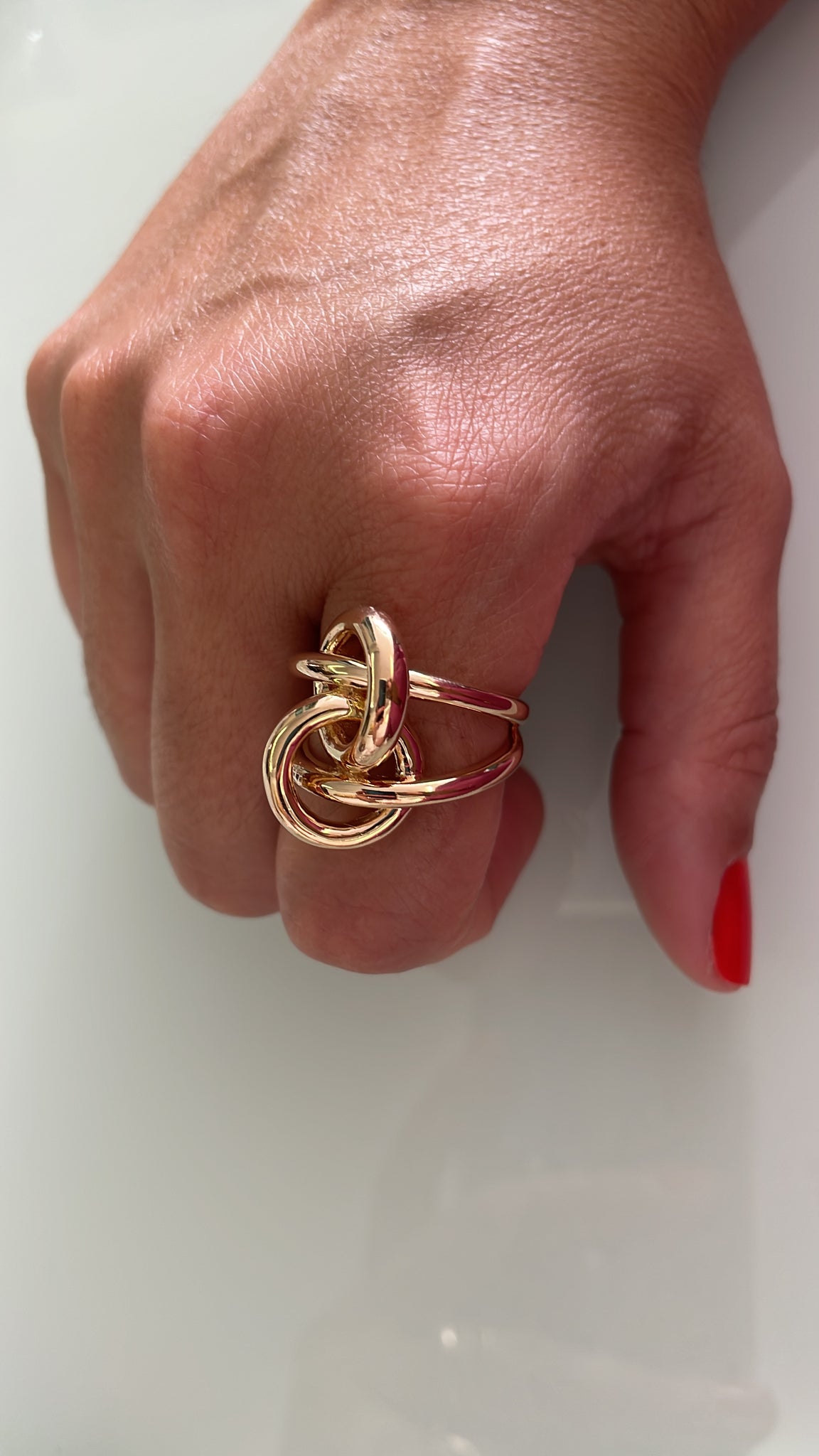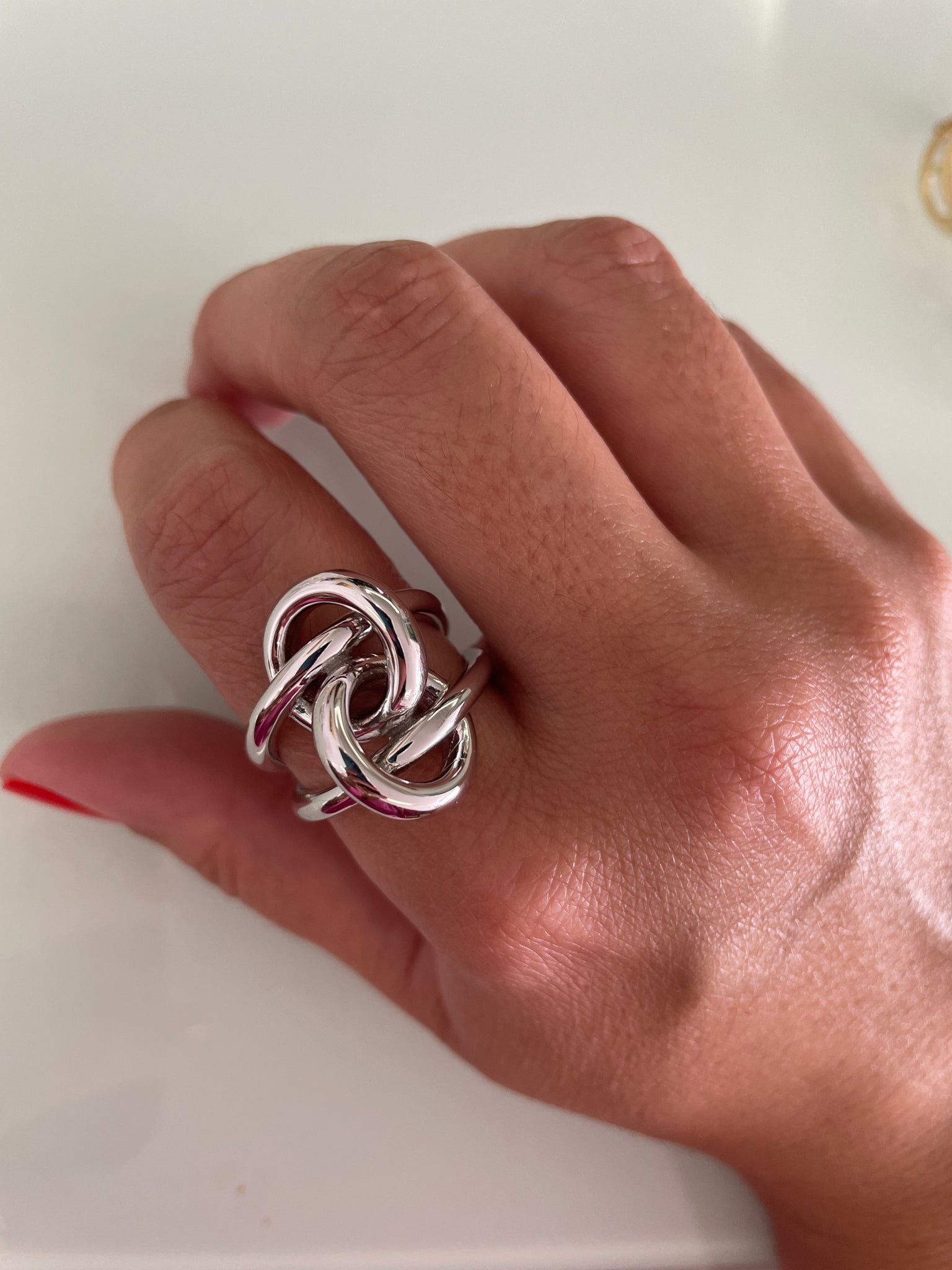 Anel elo nó polido em prata925 com banho de ródio branco e ouro
