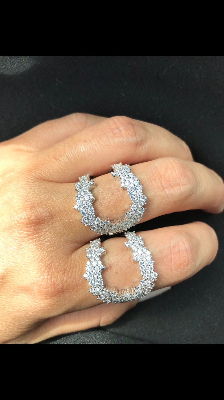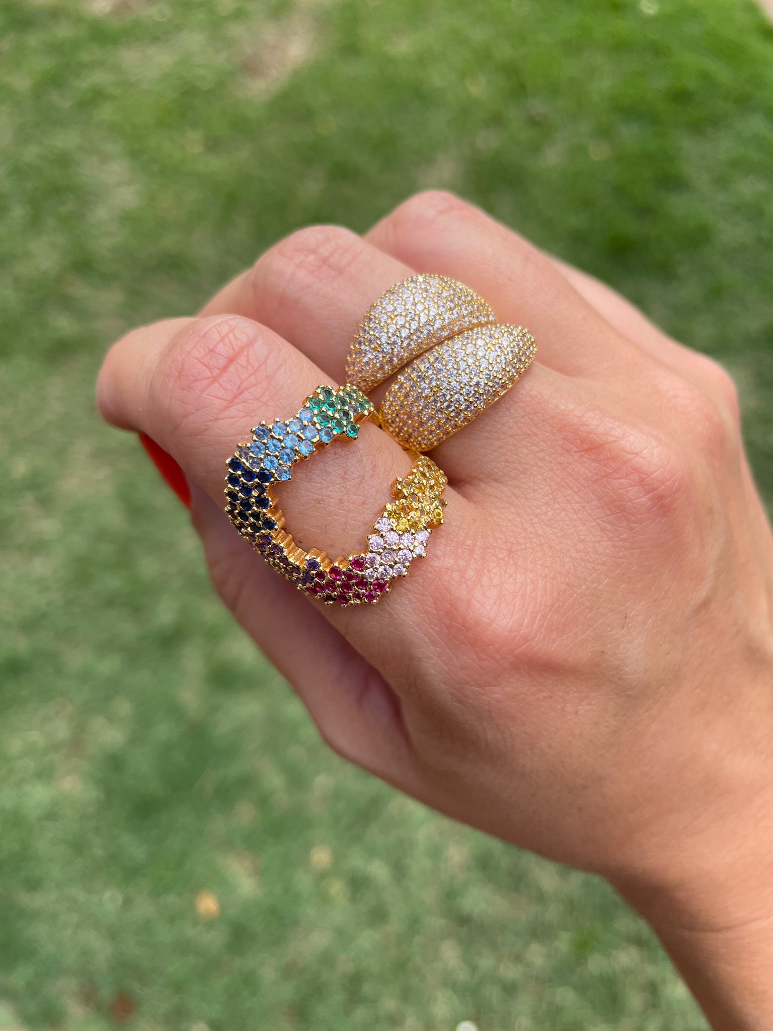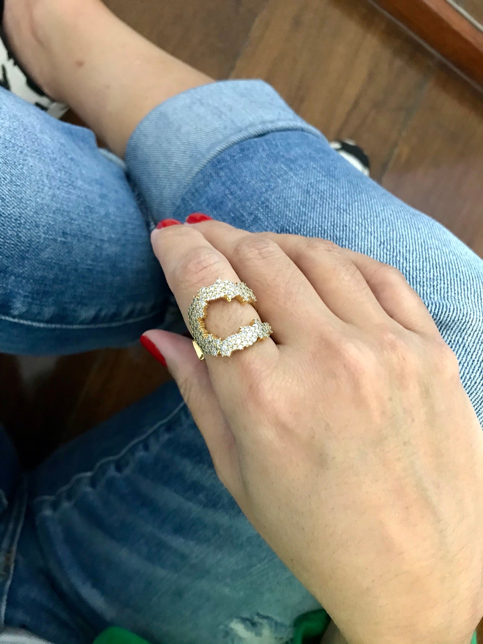 Anel ferradura prata925 aberto com zirconias, banho ouro18k