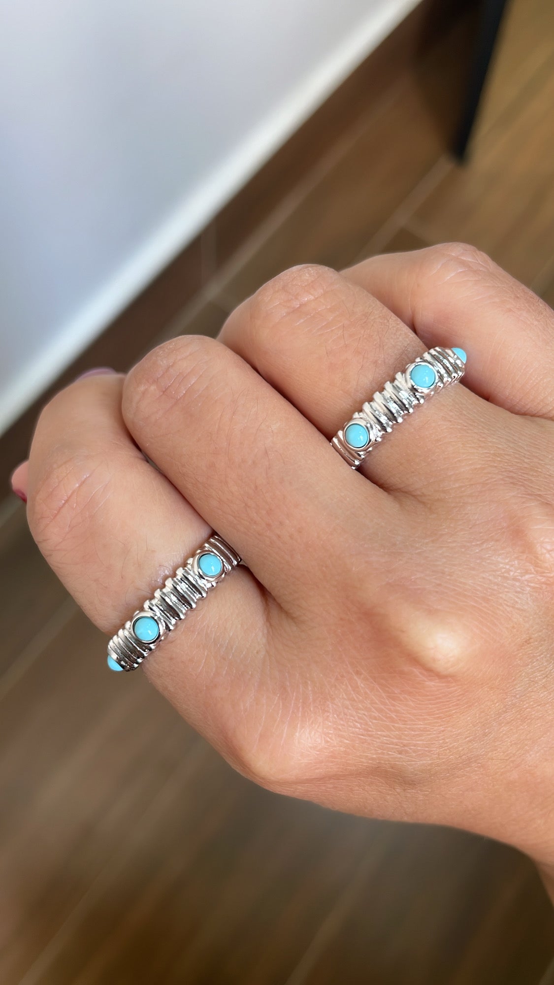 Anel frisado com pontos turquesa em prata925 e banho de ródio branco