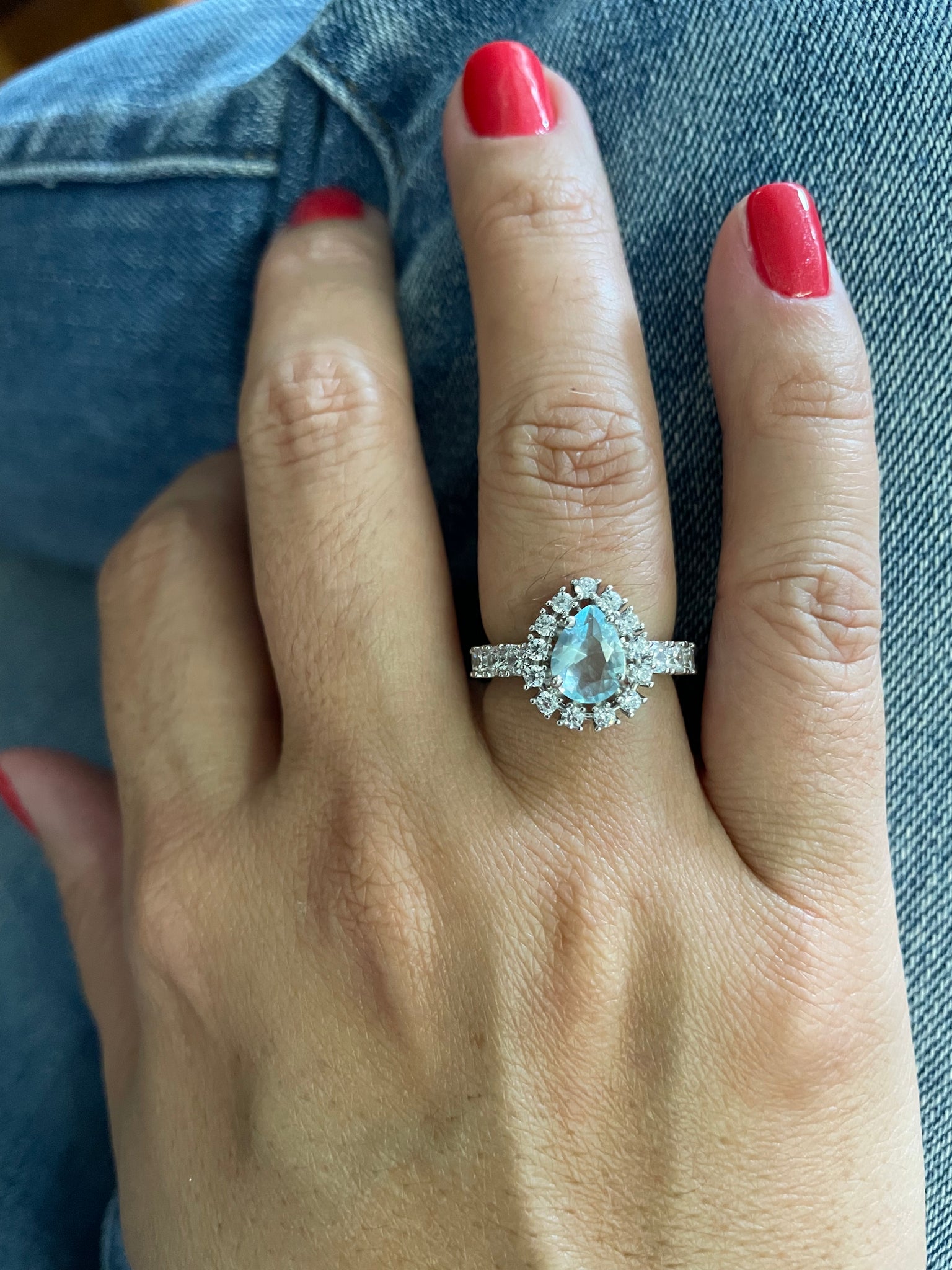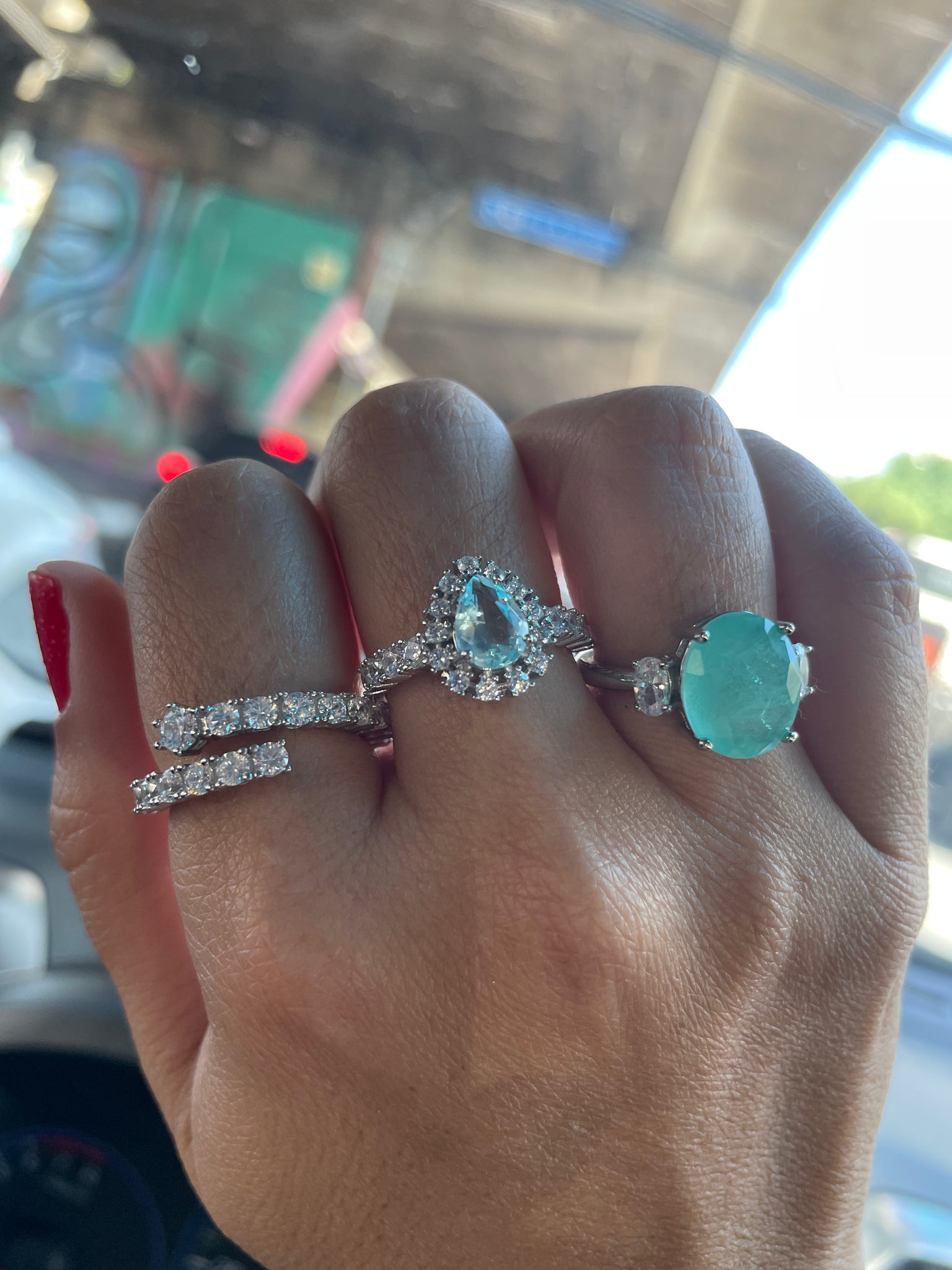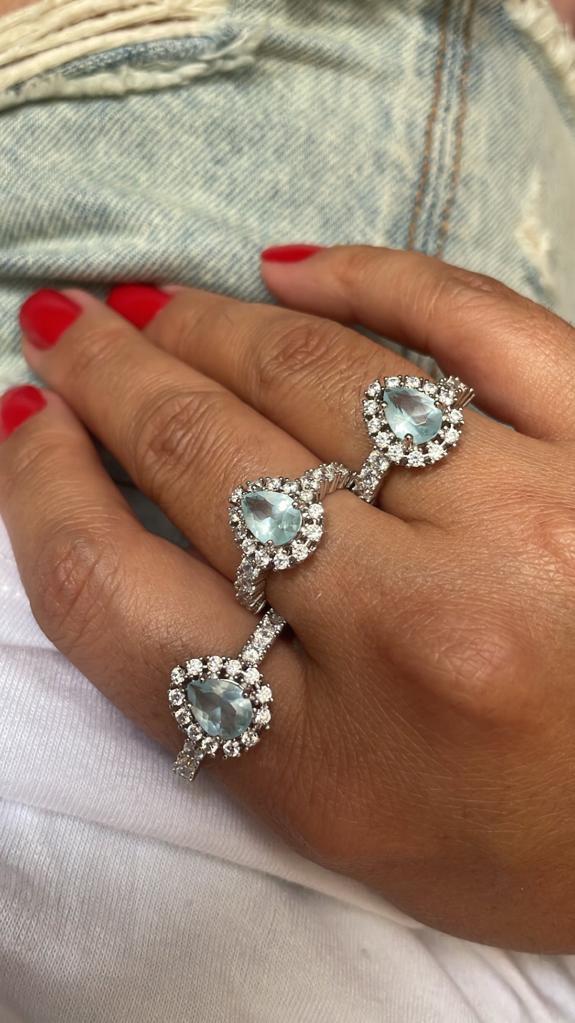 Anel gota zirconias em volta em prata925 com banho de ródio branco