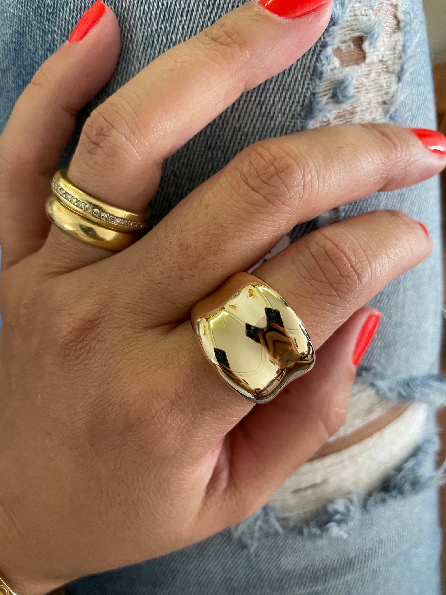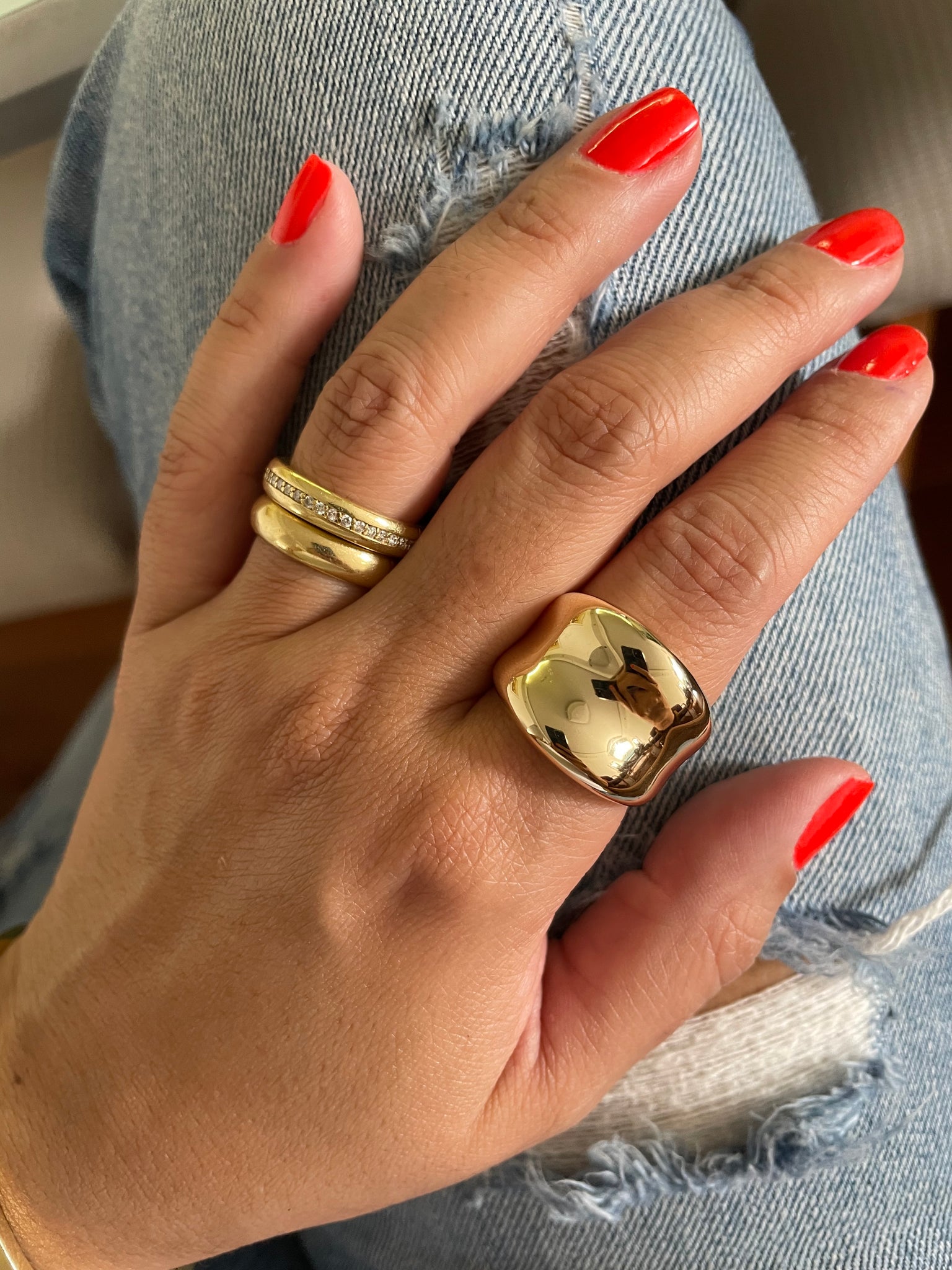 Anel polido largo fino no meio em prata925 com banho de ouro
