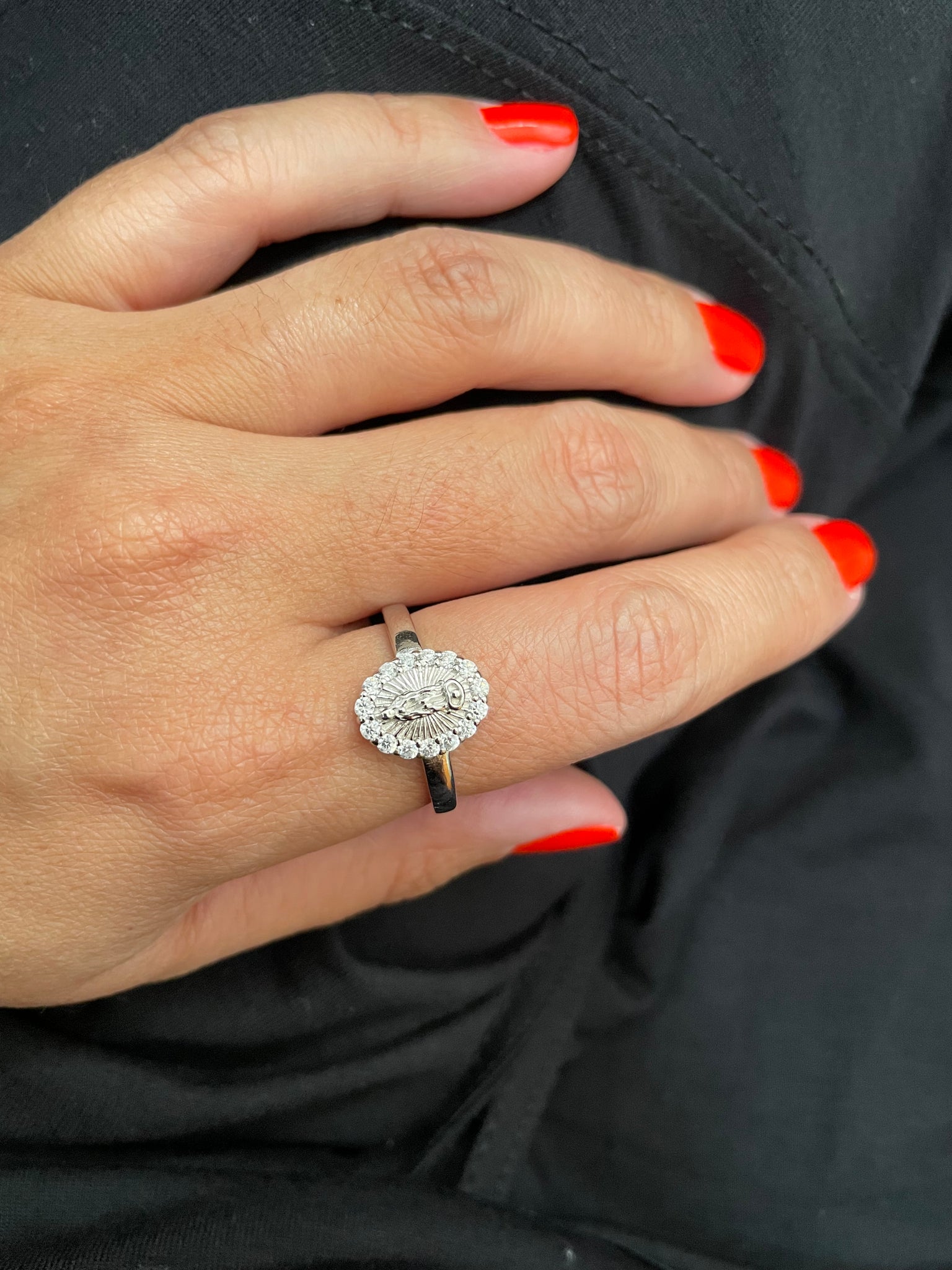 Anel Nossa Senhora de Guadalupe em prata925 com zirconias e banho de ródio branco