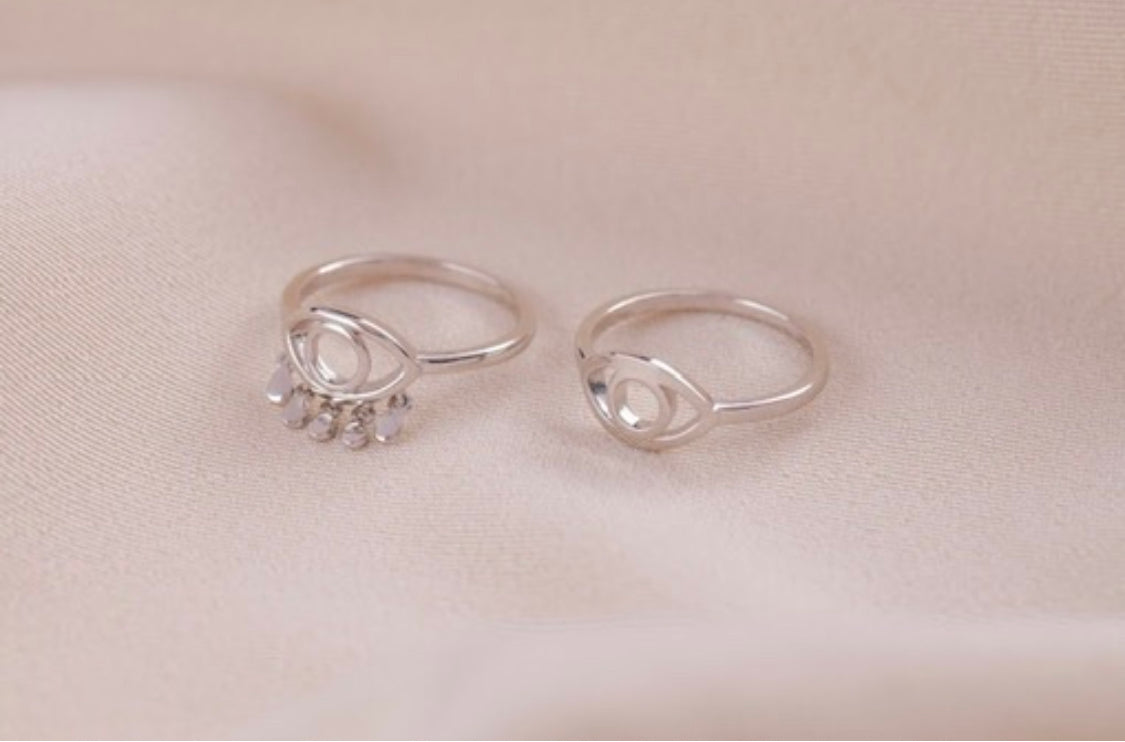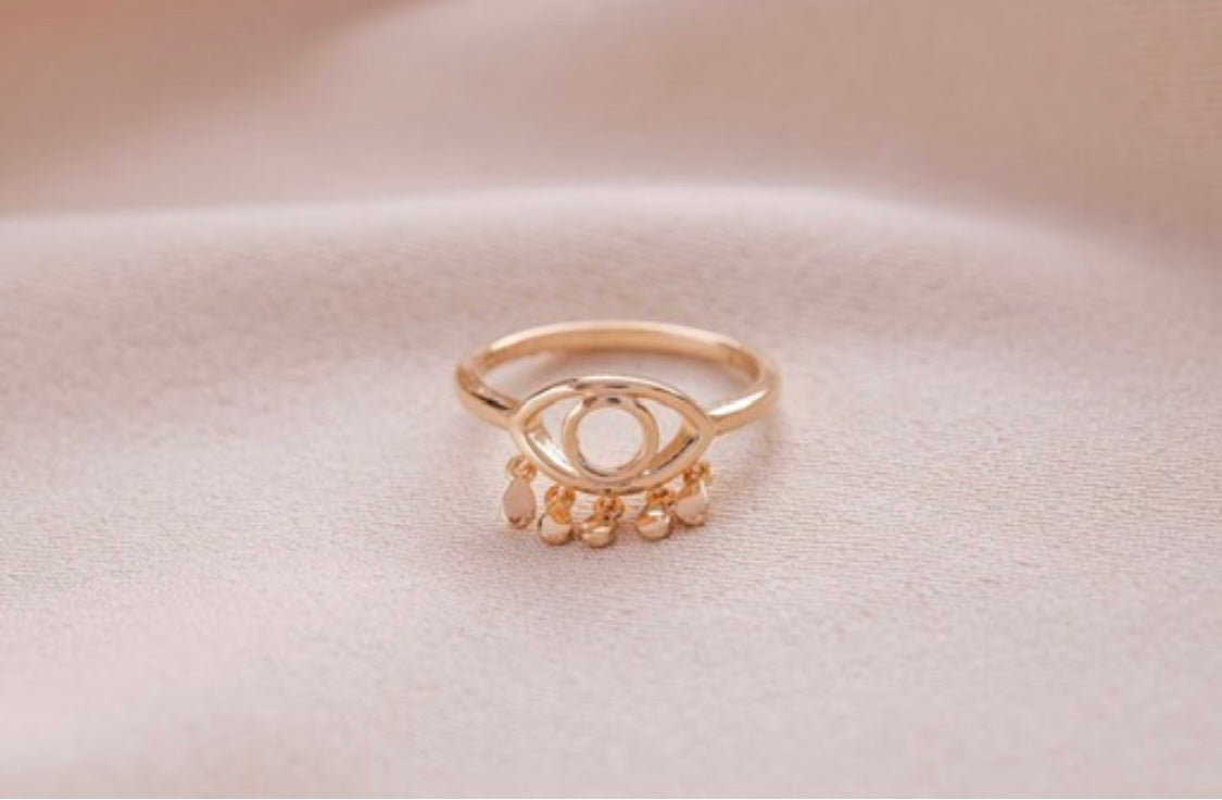 Anel olho grego gotinhas polido em prata925 com banho de ródio branco e ouro