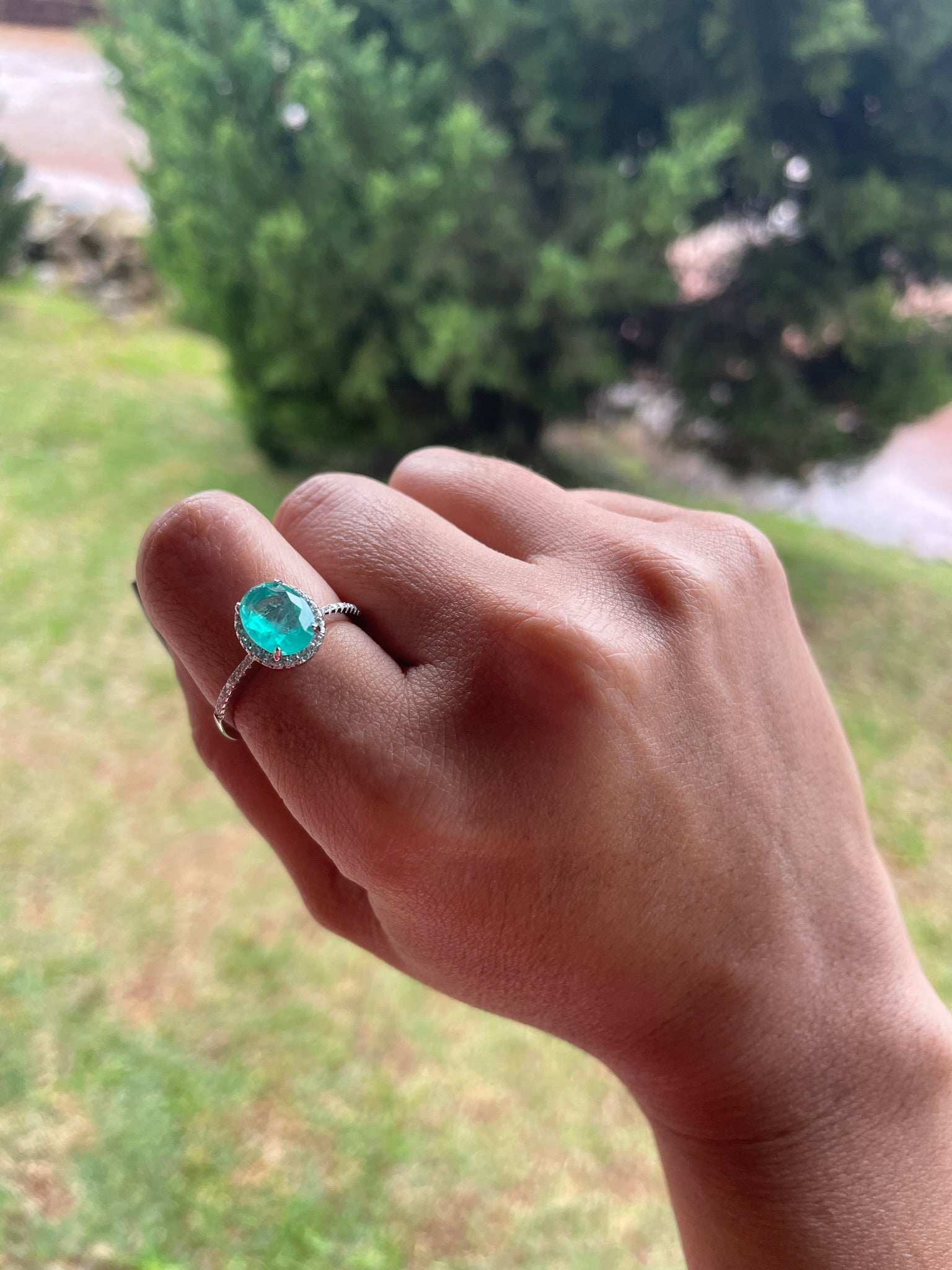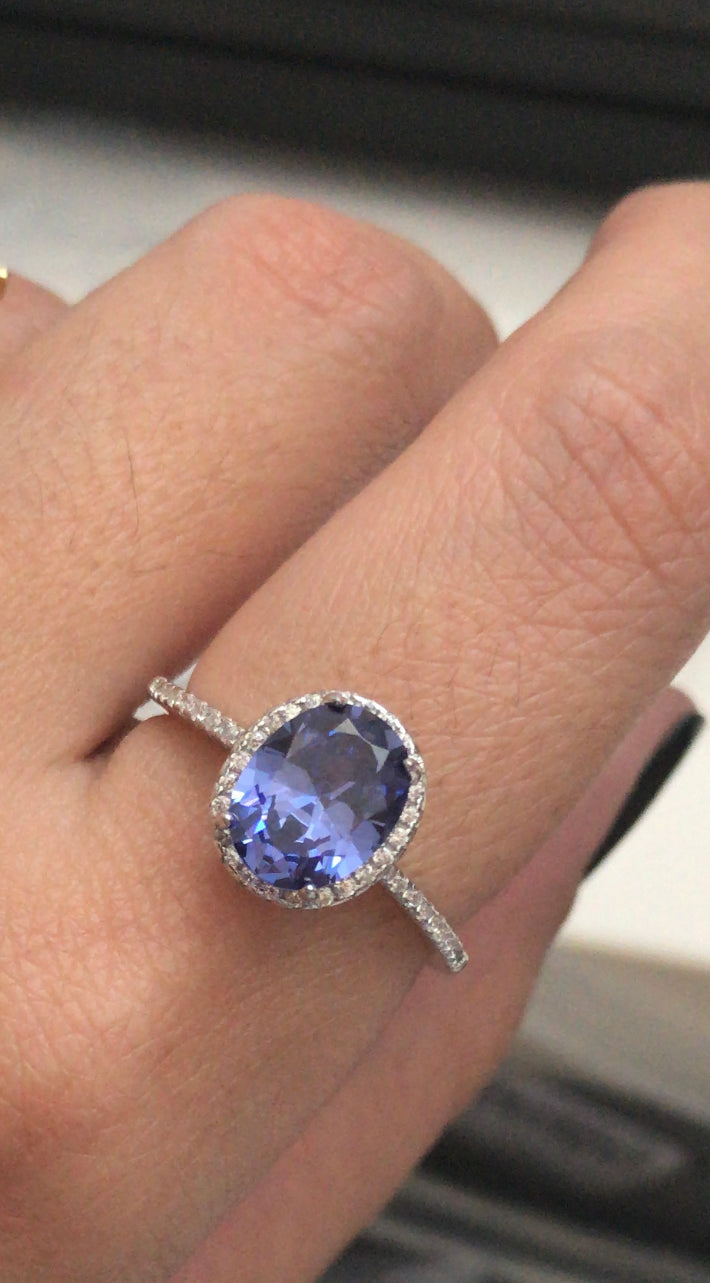 Anel oval com zirconias em volta