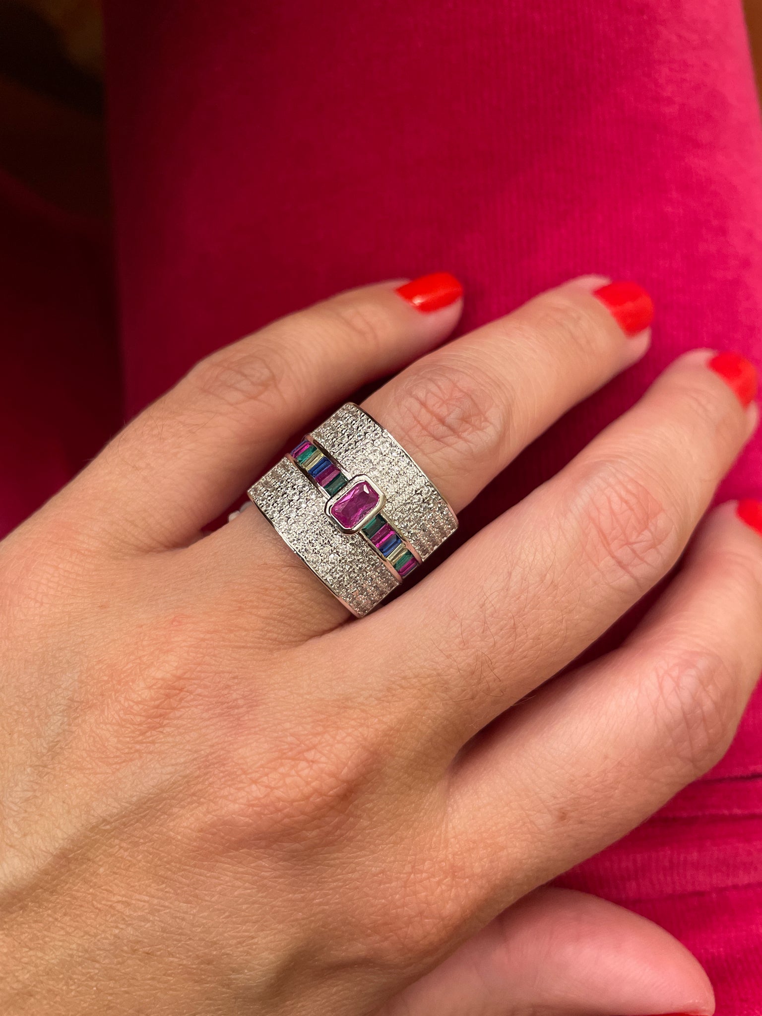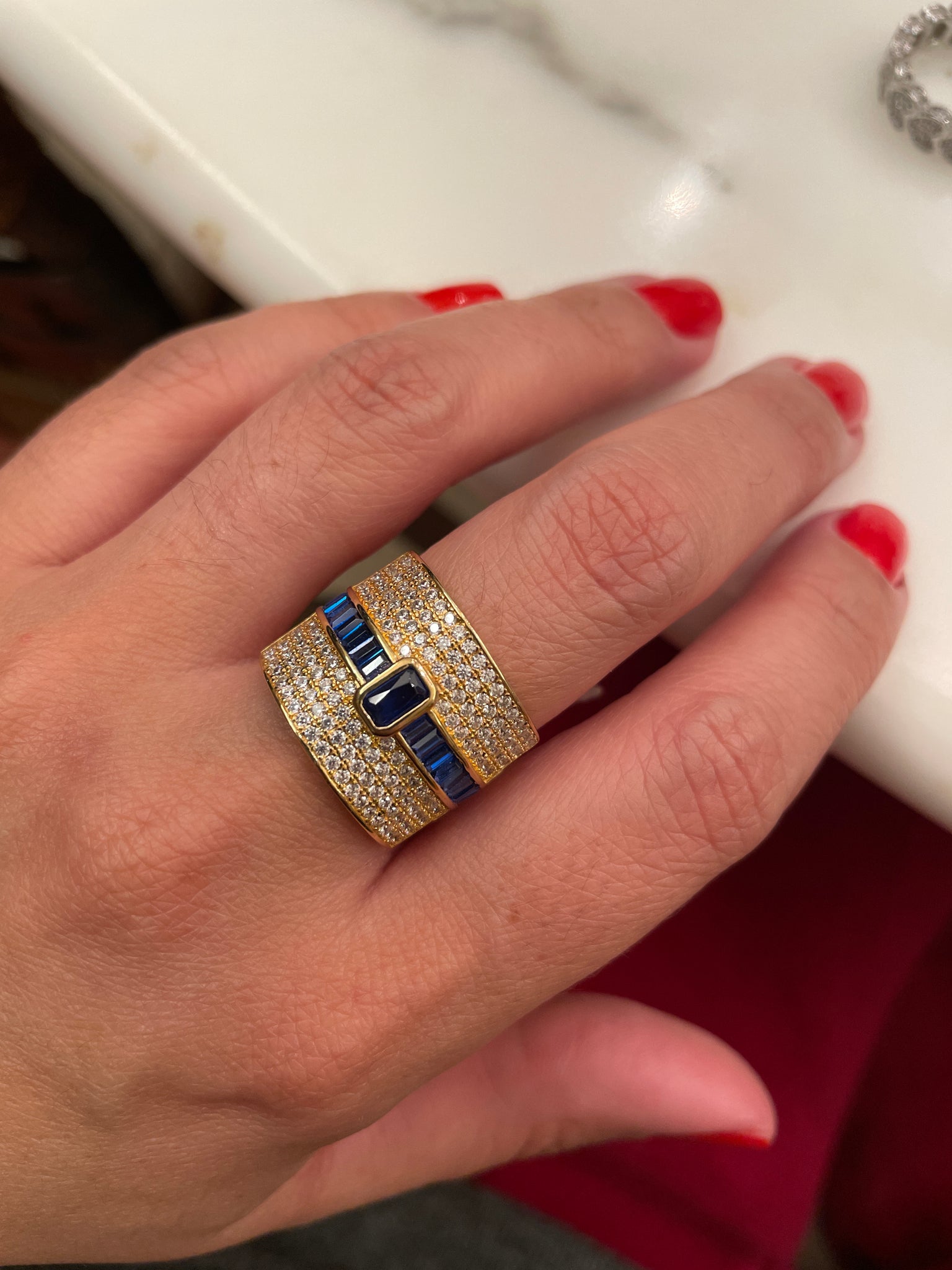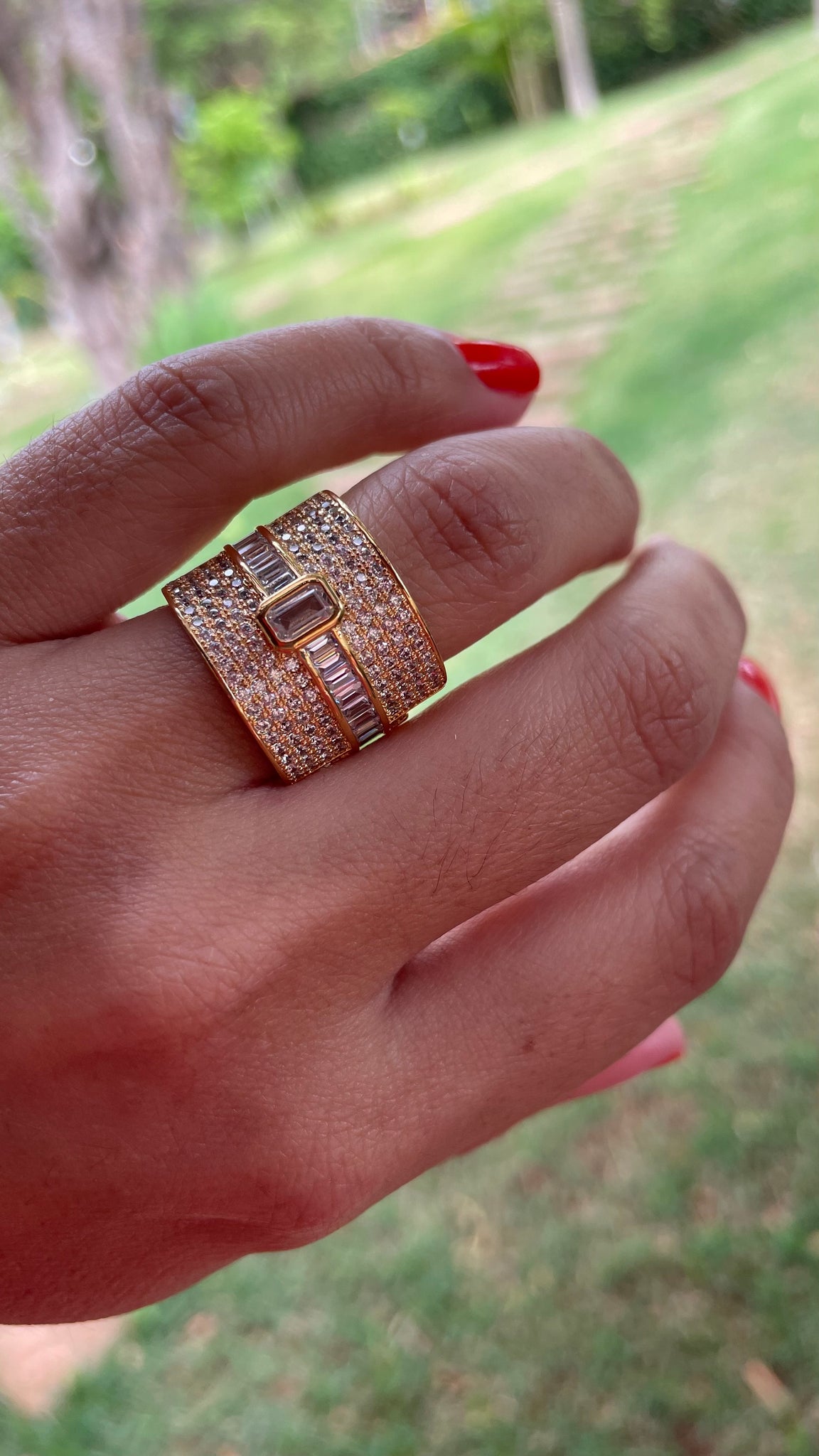 Anel em prata925 com zirconias faixa baguete no banho de ouro e ródio branco