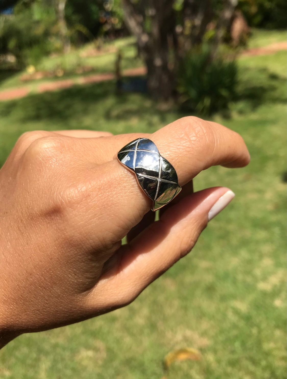 Anel polido com traços X