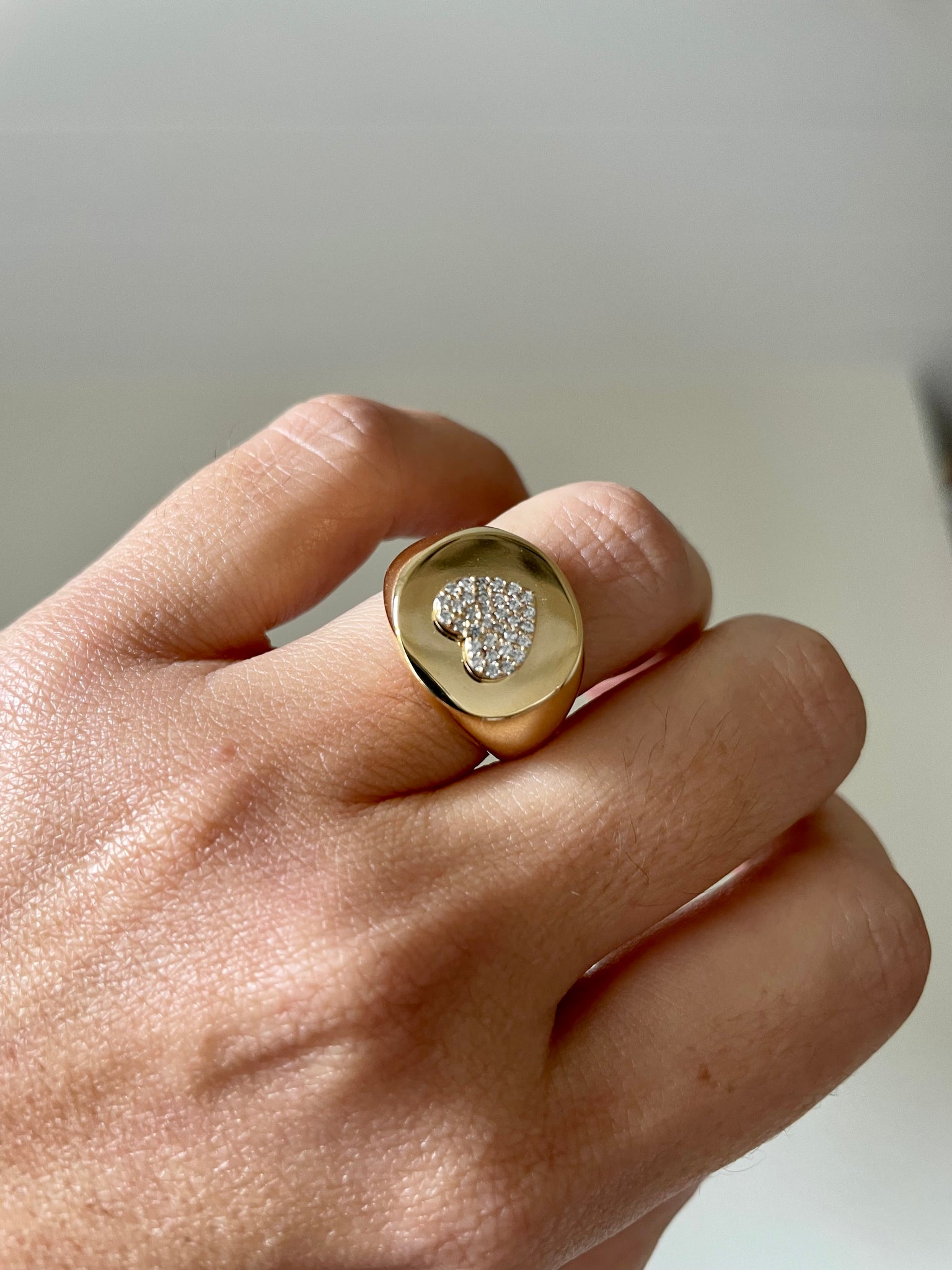 Anel polido com coração de zirconias em prata925 com banho de ouro