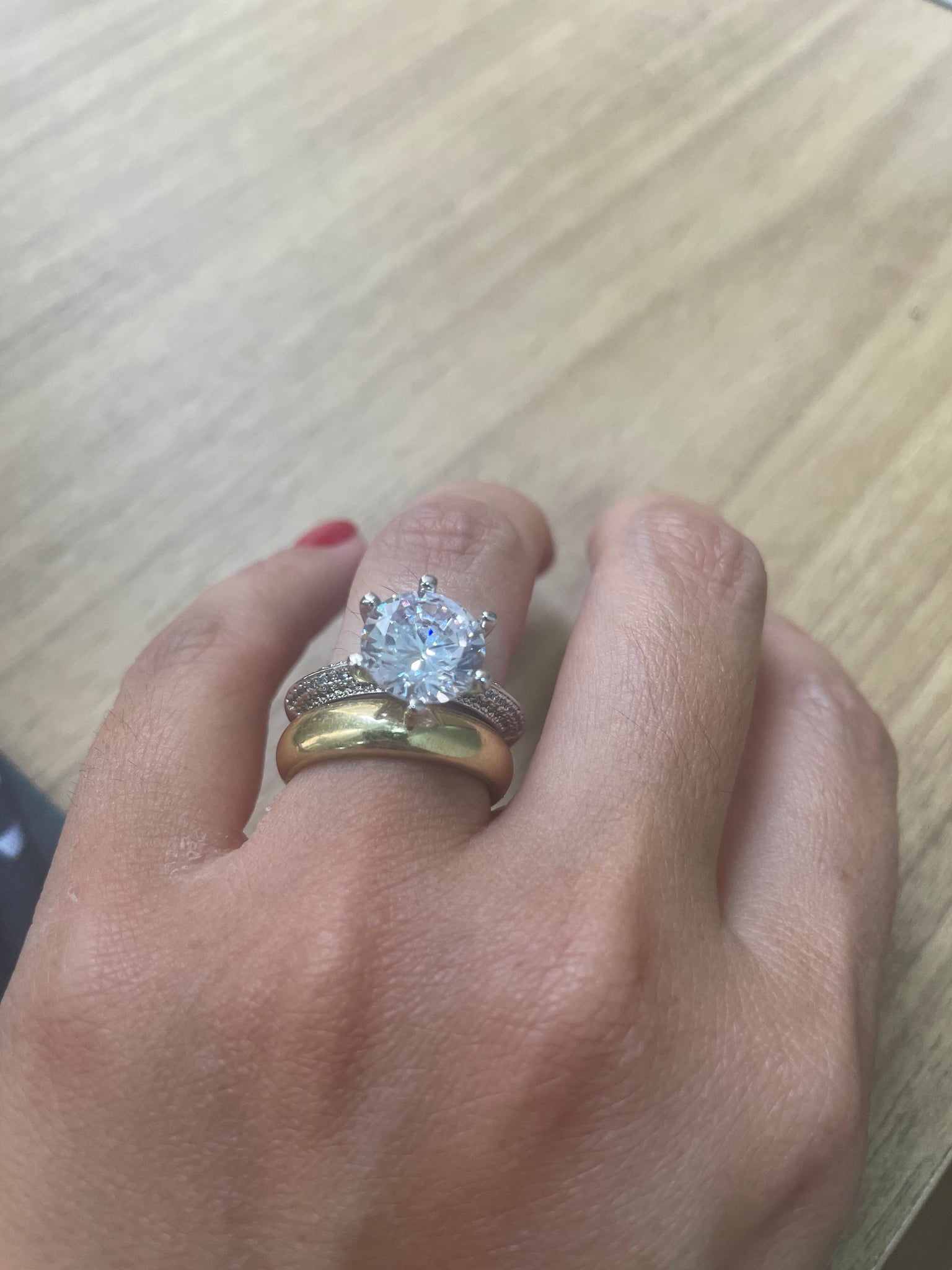 Anel solitário com zircônia de 10mm e aro com micro cravação em zirconias em prata925 com banho de ródio branco