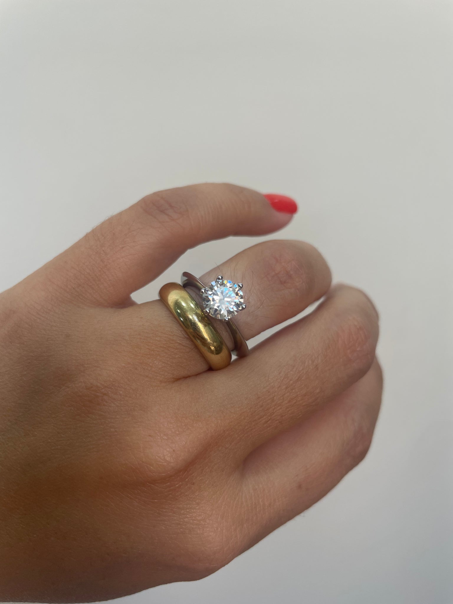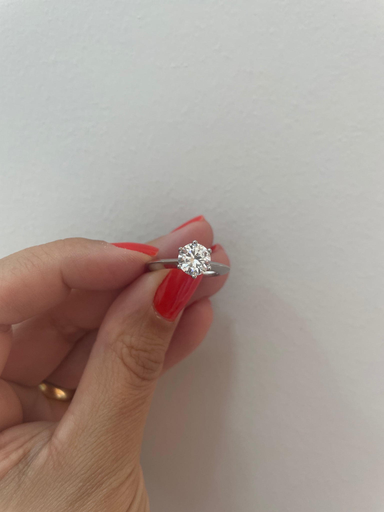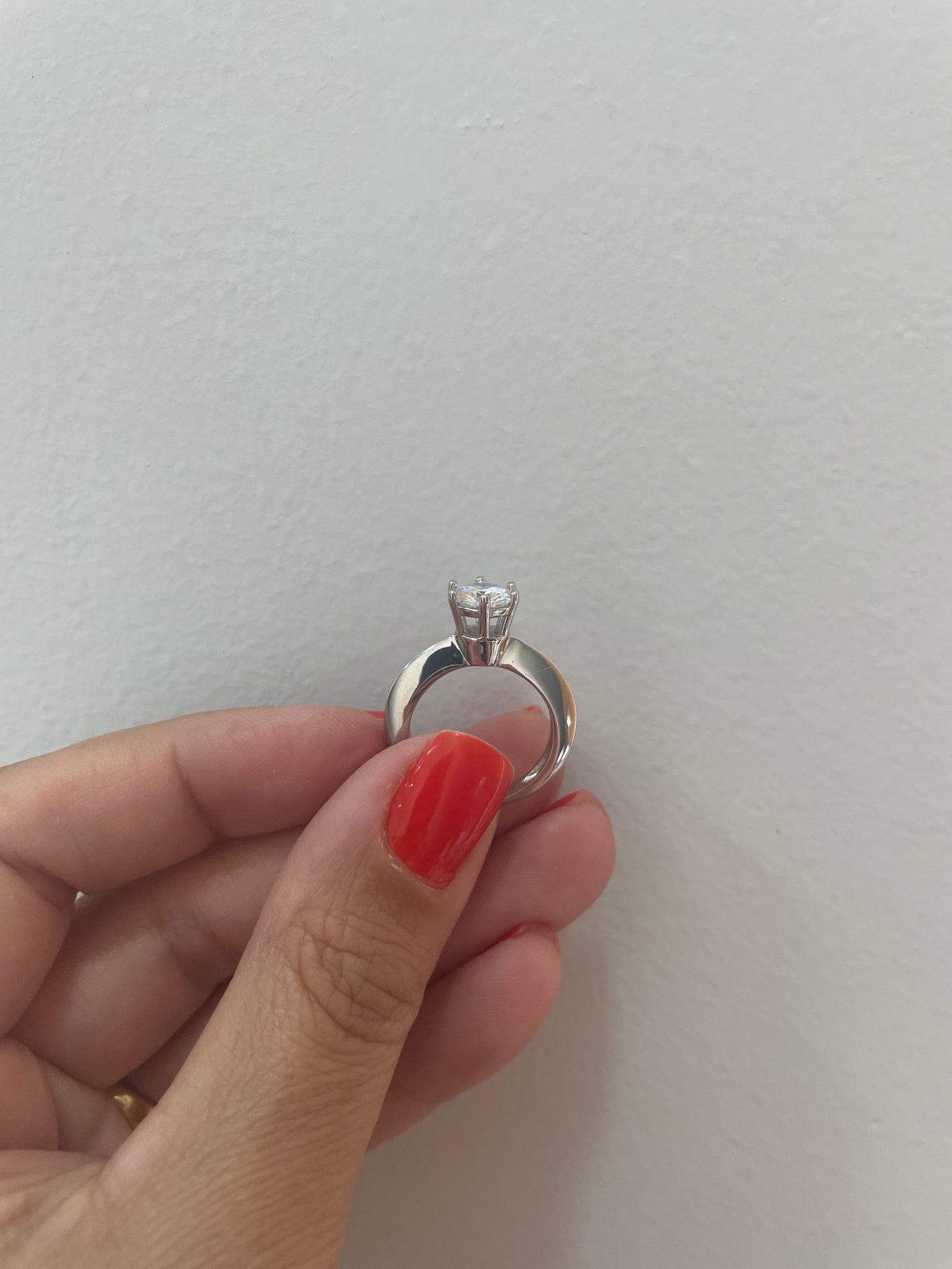 Anel solitário Thassia com pedra em moissanite cor D com de 7mm - 1.25ct, com 6 garras em prata925 com banho de ródio branco