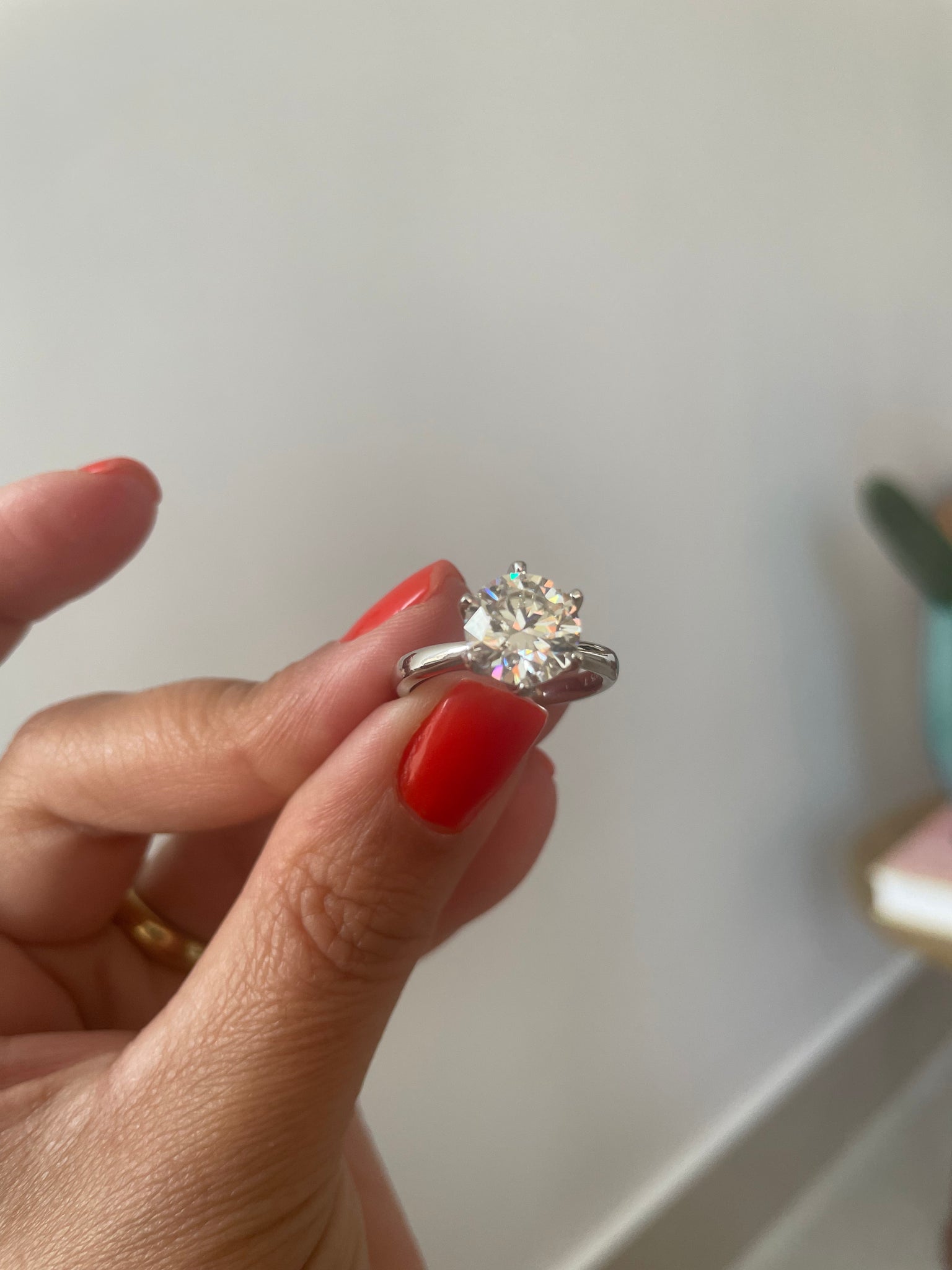 Anel solitário em moissanite de 10mm - 3.5ct com 6 garras em prata925 com banho de ródio branco