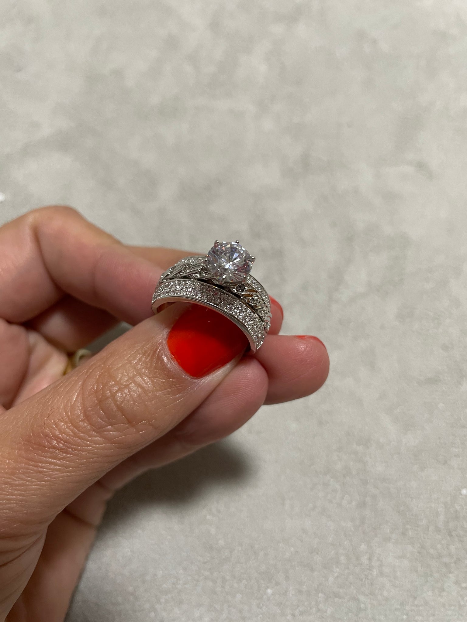 Anel solitário detalhe corrente e zirconias em prata925 com banho de ródio branco