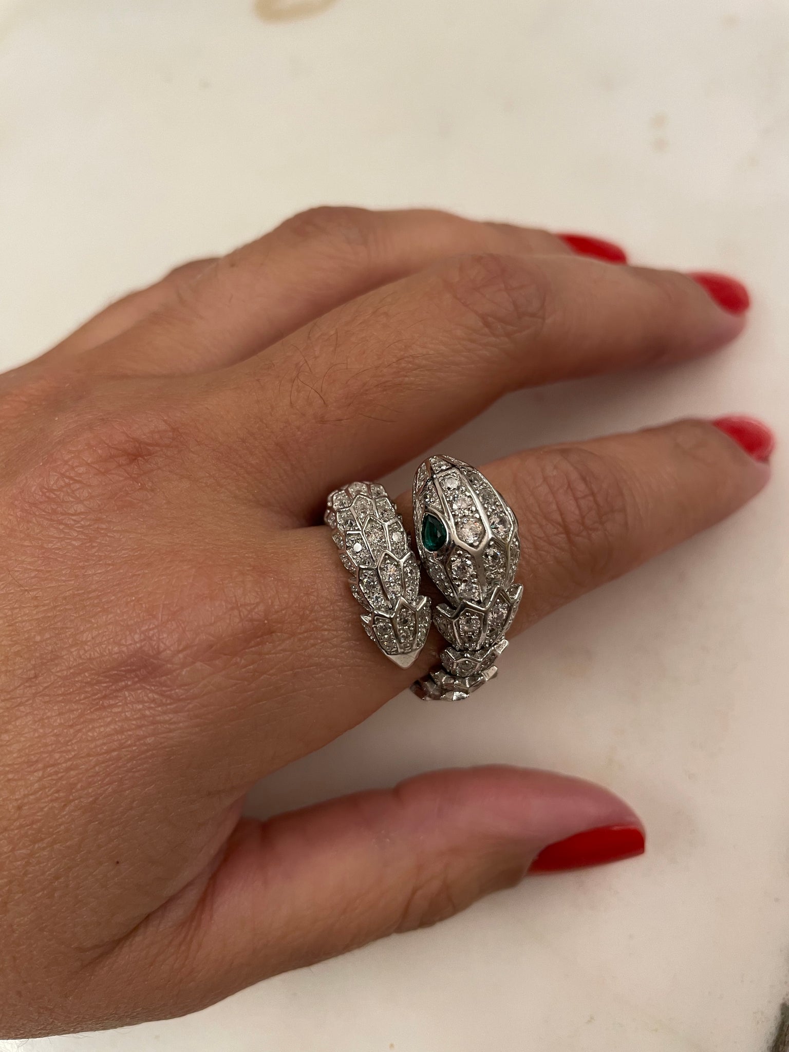 Anel snake anatômico em prata925 com zirconias e banho de ródio branco