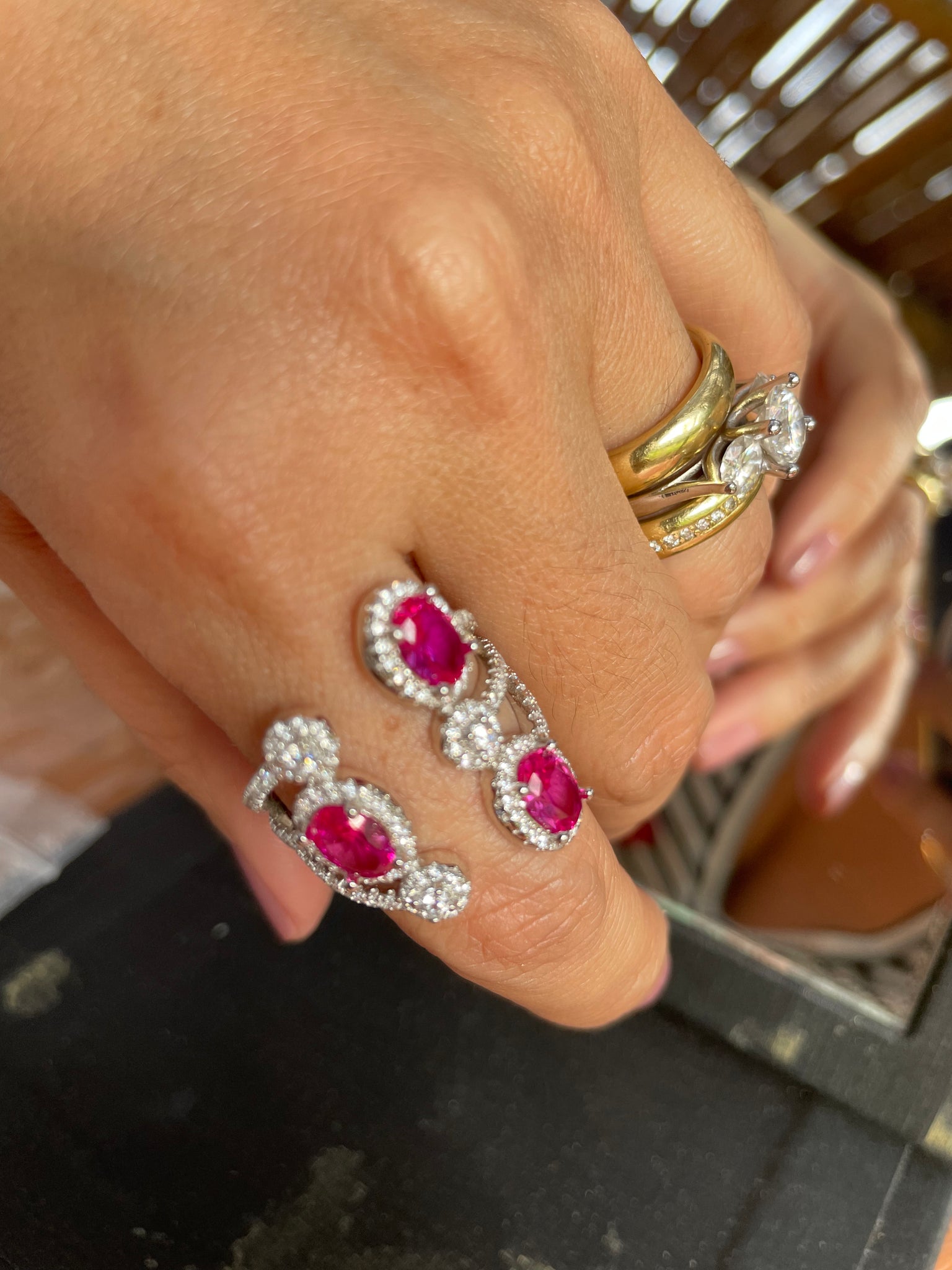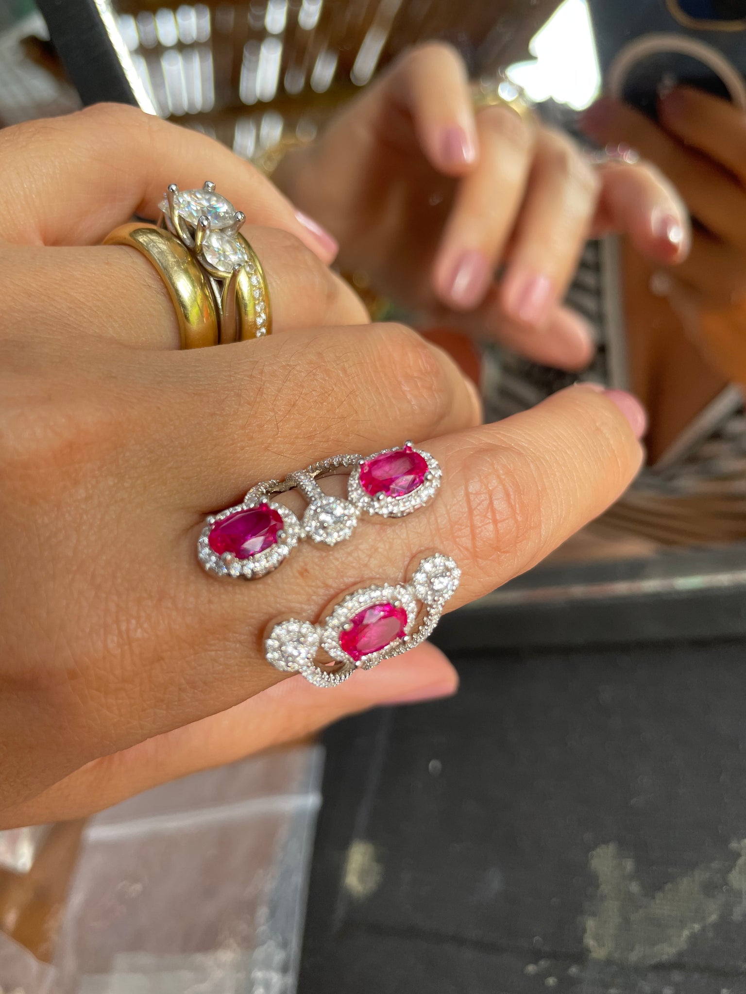Anel turmalina pink aberto em prata925 com zirconias e banho de ródio branco