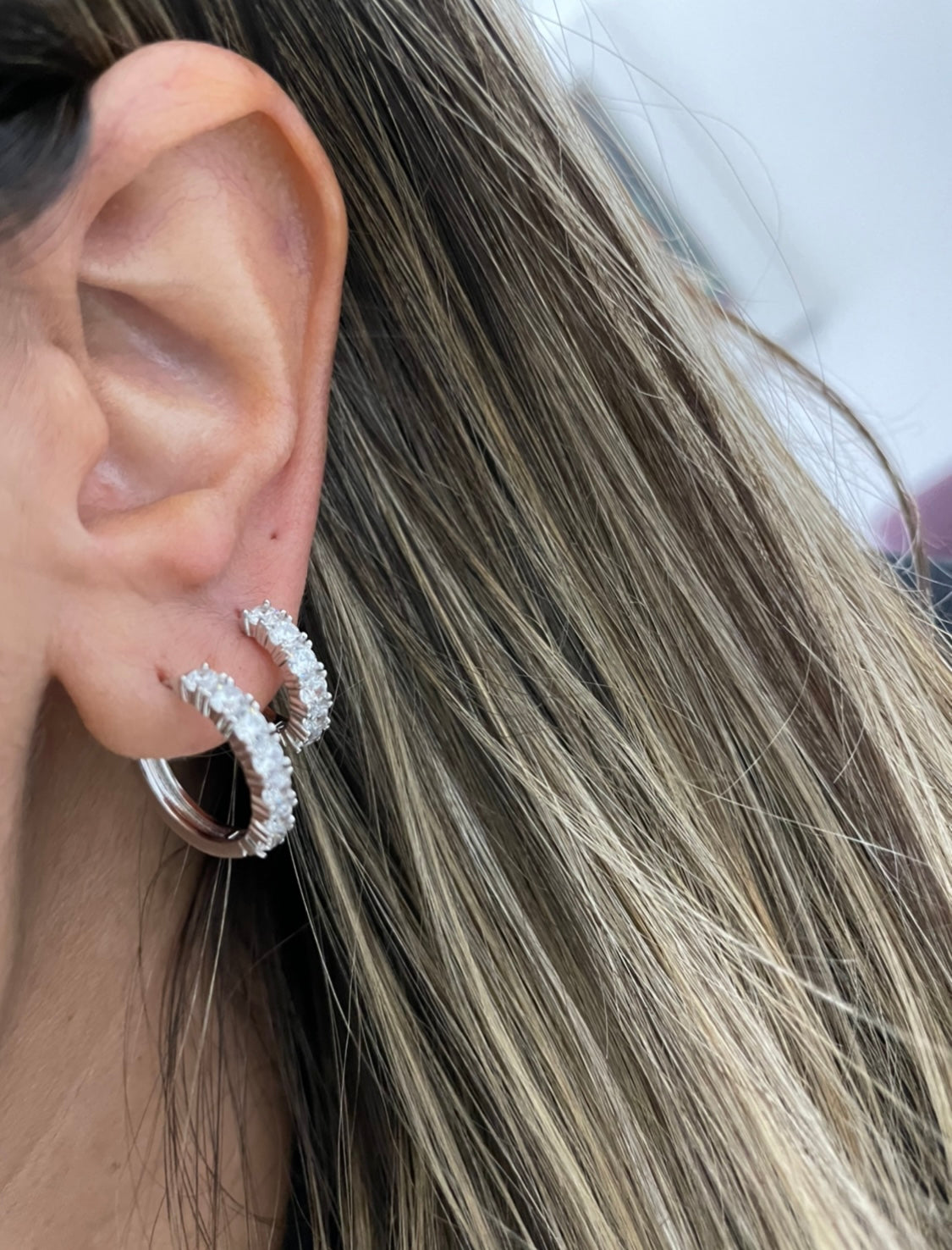 Argola 1 fileira zirconias em prata925 com banho de ródio branco