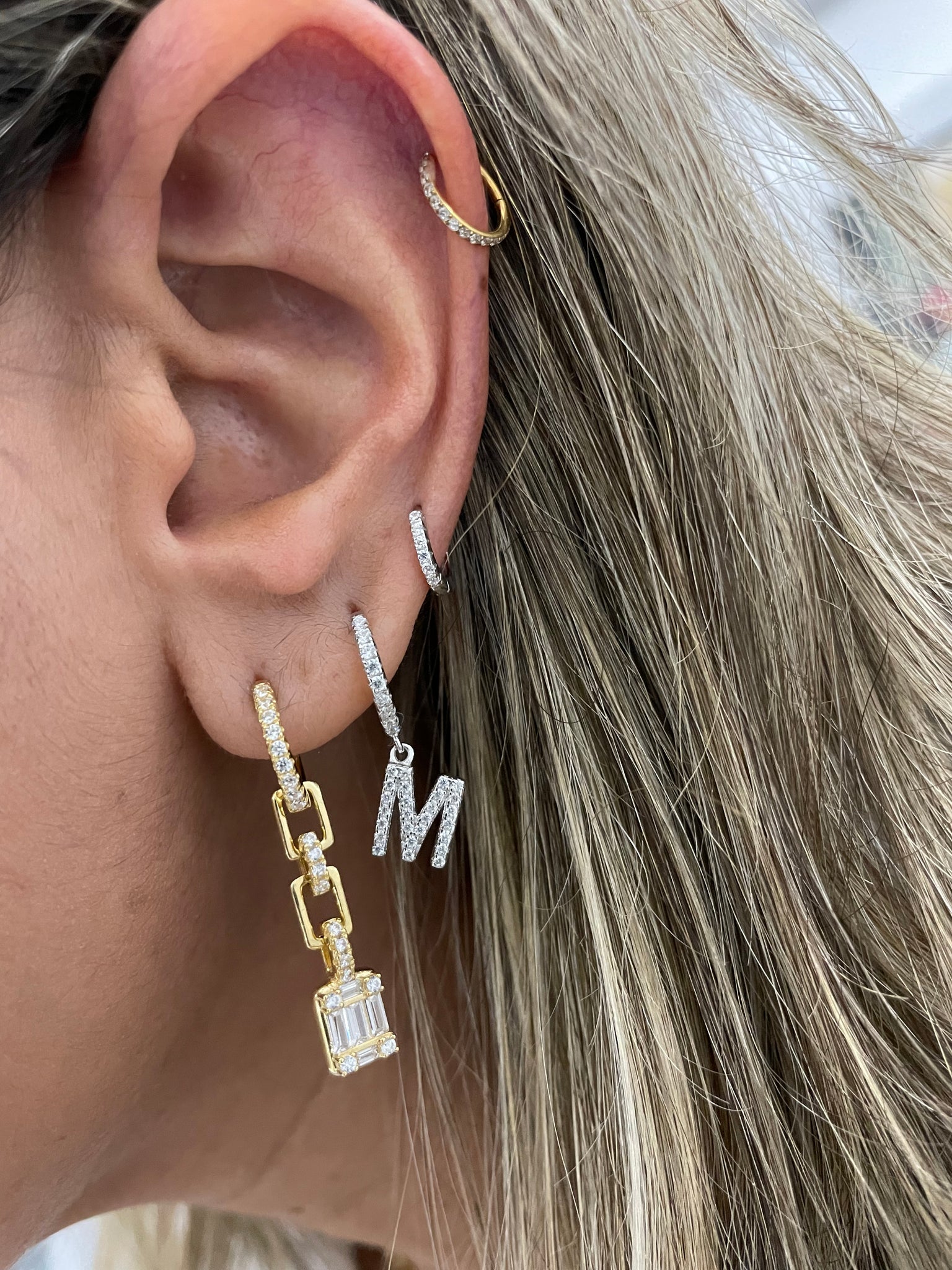 Argola com dois elinhos e baguete em prata925 com banho de ródio branco e ouro