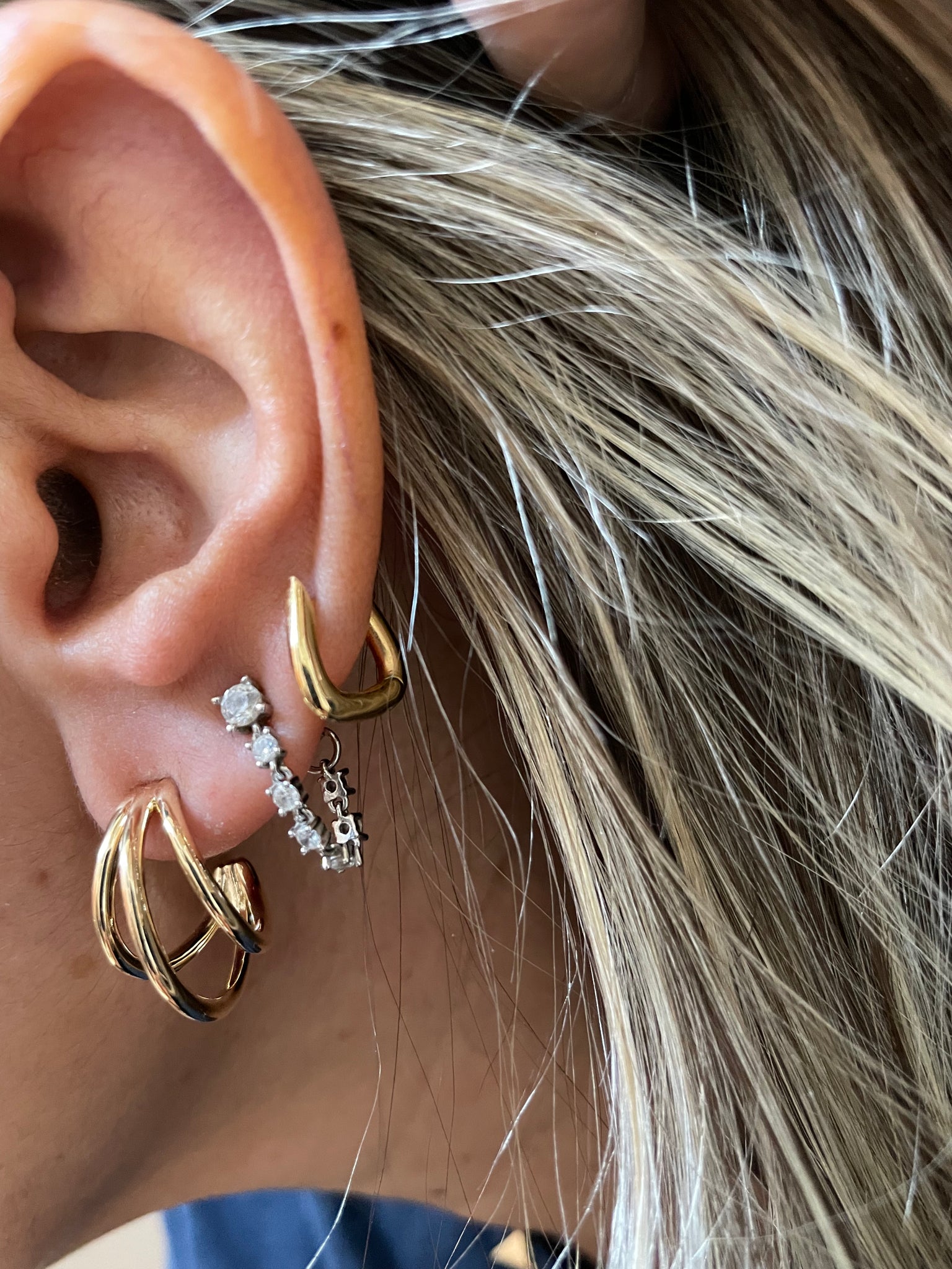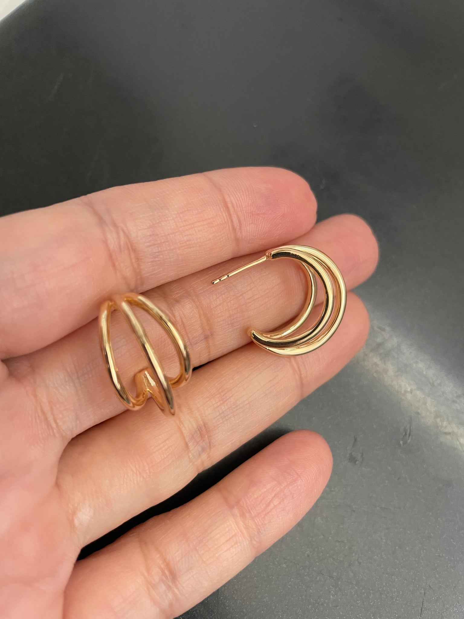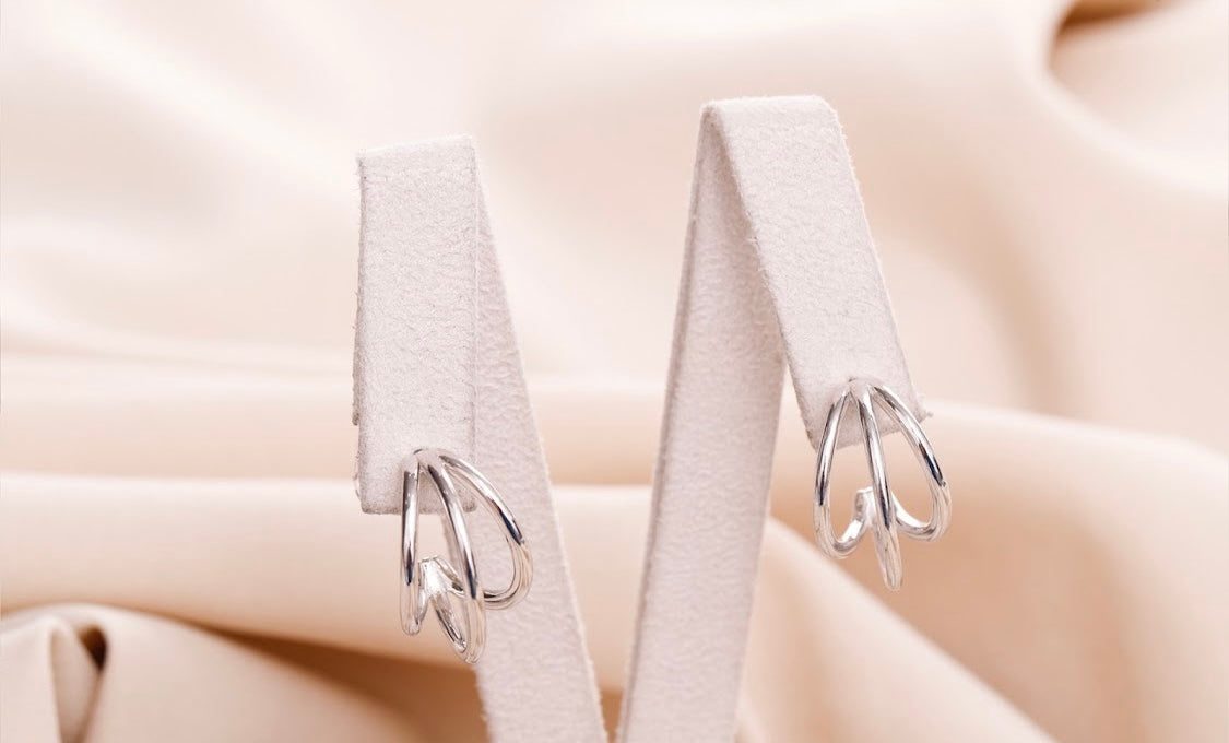 Argola com 3 aros polidos aberta em prata925 com banho de ródio branco e ouro