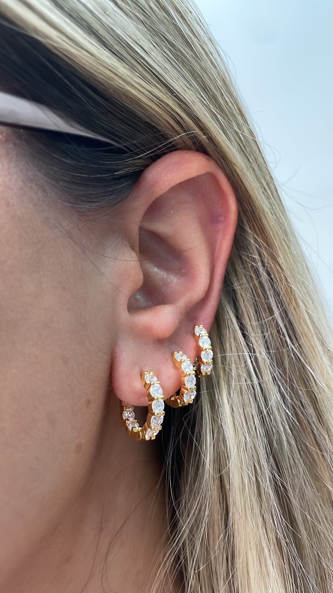Argola em prata925 com 6 zirconias e com 1,1 de diâmetro com banho de ródio branco