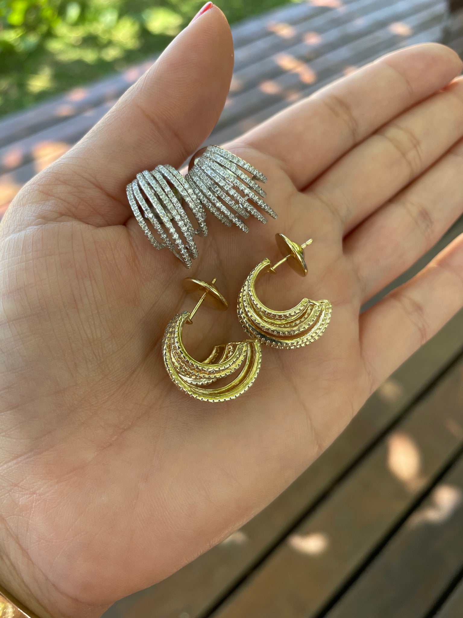 Argola 7 aros em prata925 com zirconias nos banhos de ródio branco e ouro
