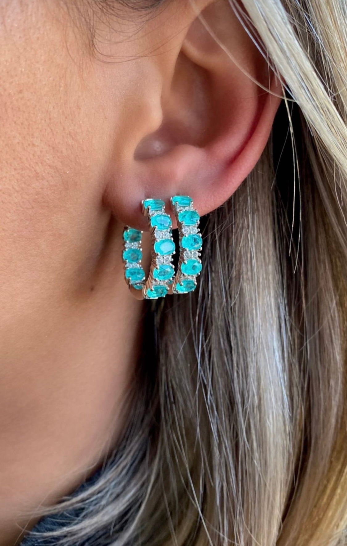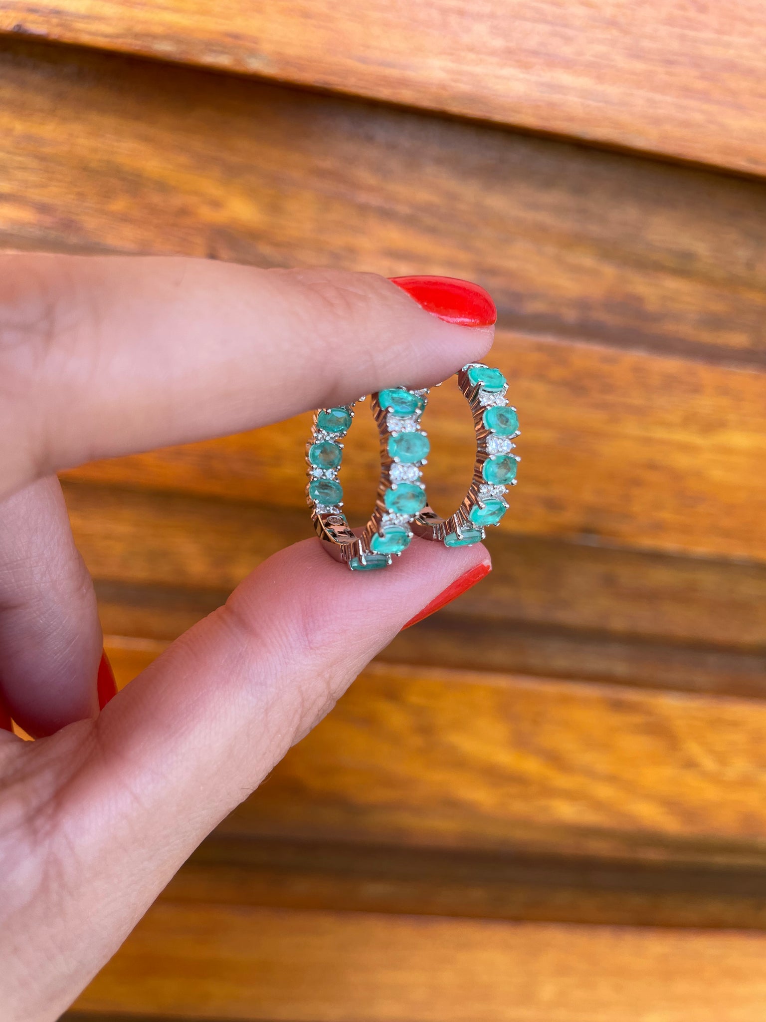 Argolas pedras ovais fusions em prata925 com zirconias e banho de ródio branco