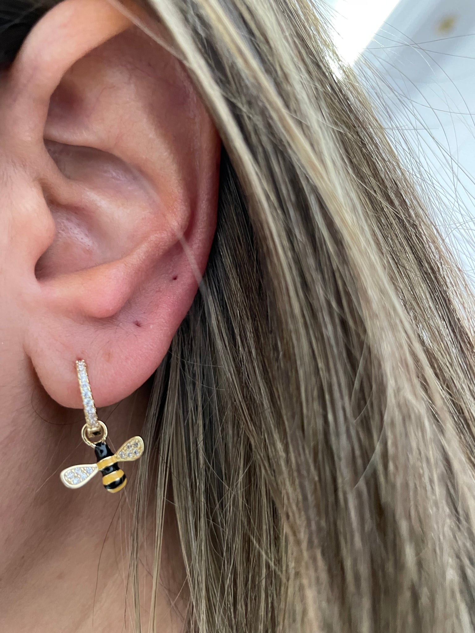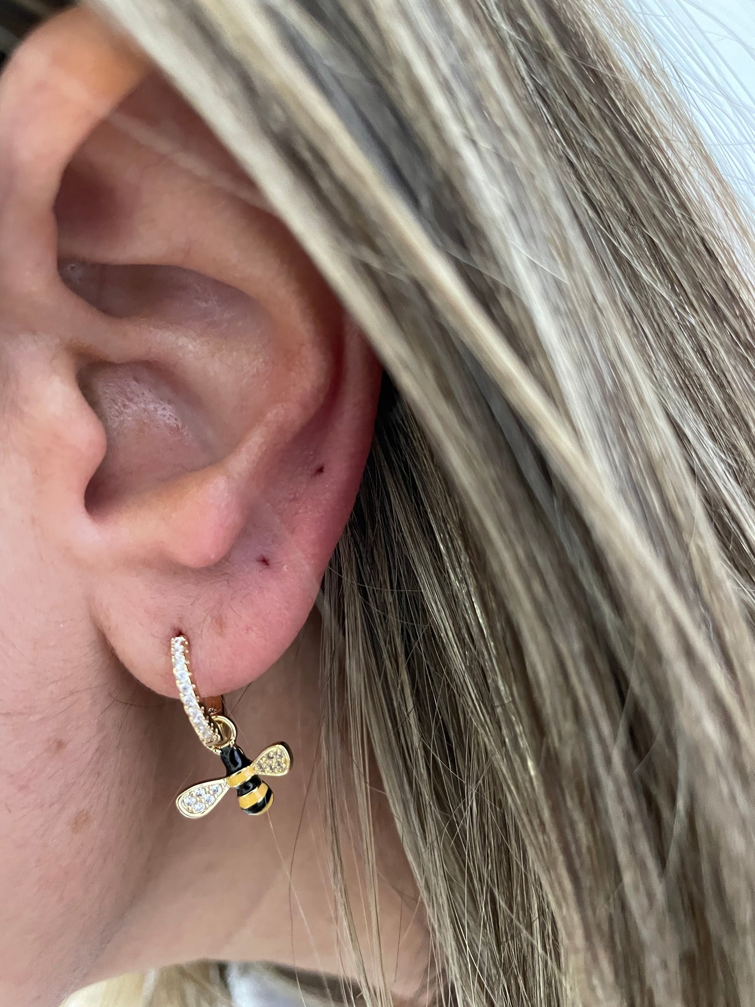 Argola abelha em prata925 com zirconias e banho de ouro