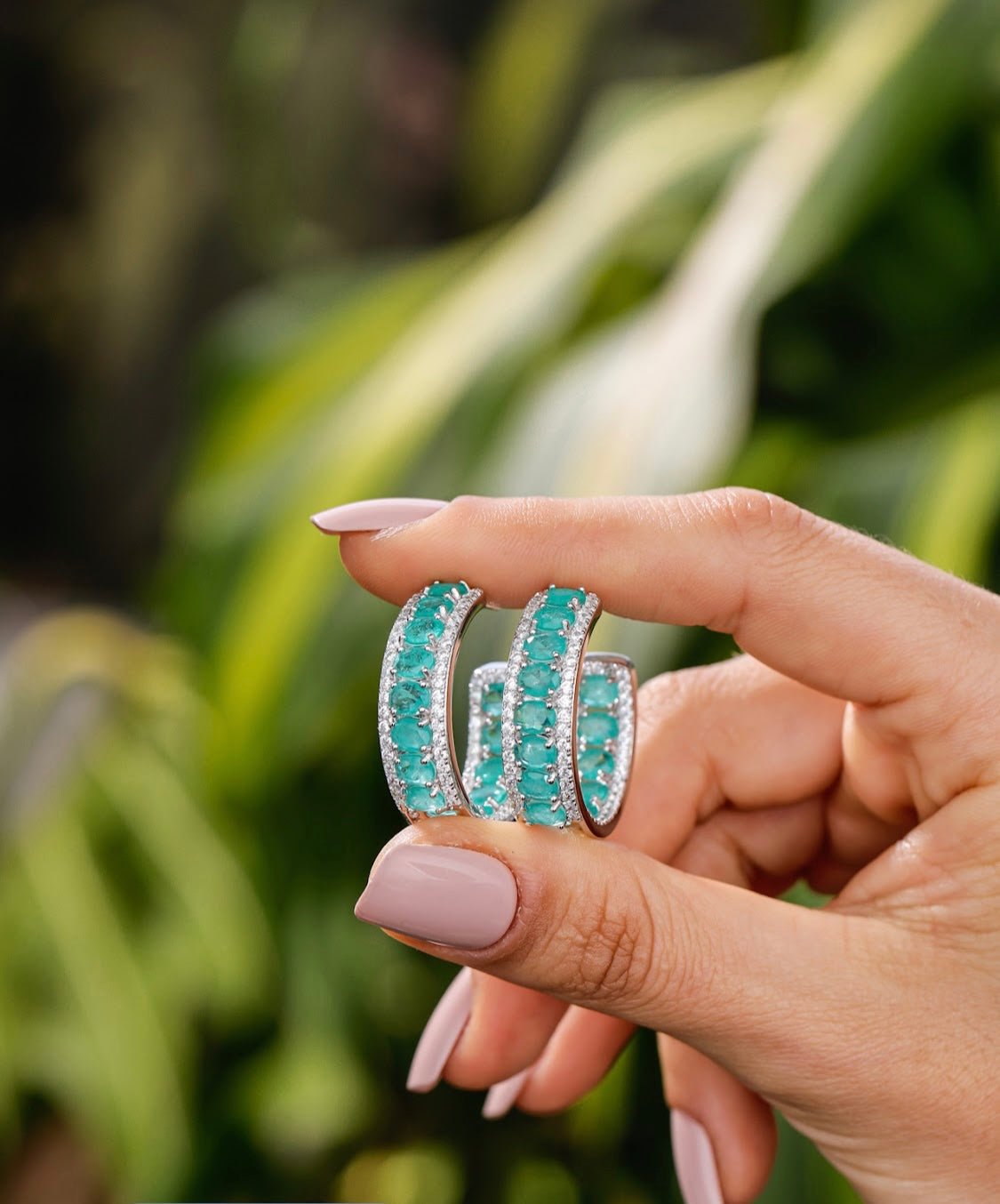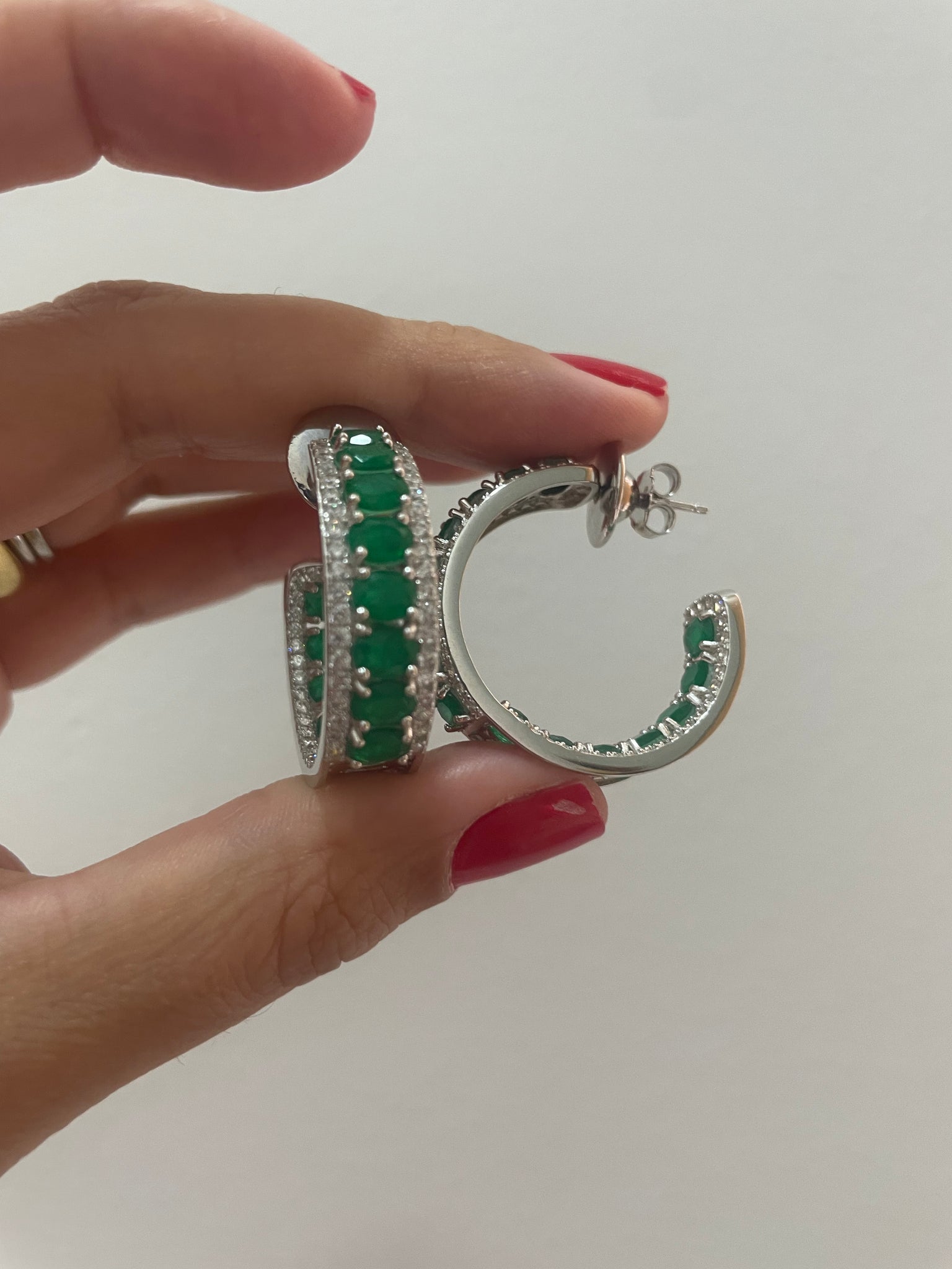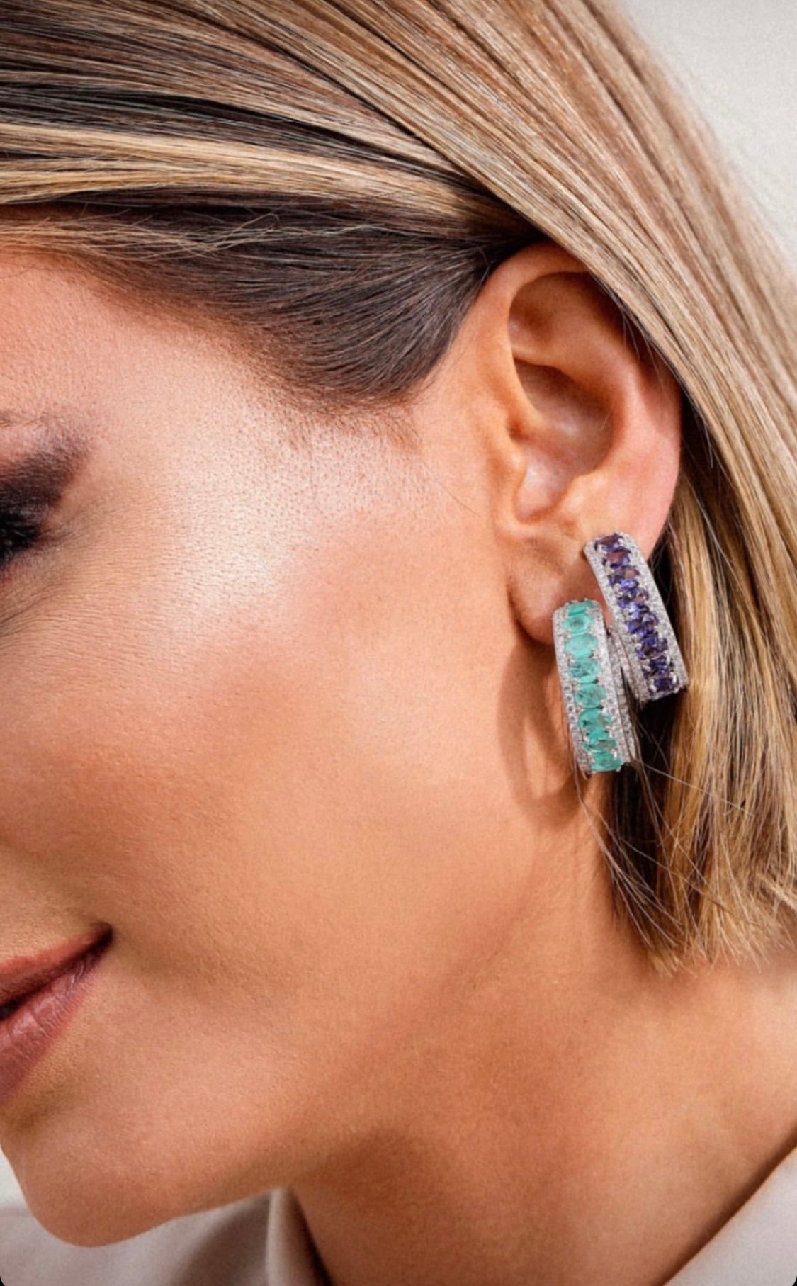 Argola aberta fusion em prata925 com banho de ródio branco e detalhes em zirconias